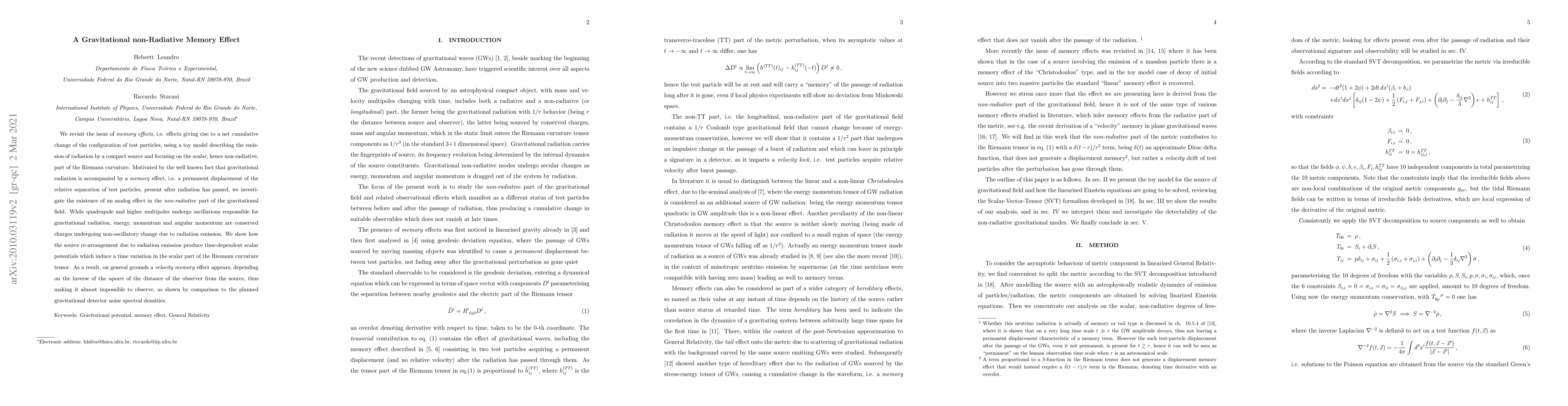 We revisit the issue of memory effects, i.e. effects giving rise to a net cumulative change of the configuration of test particles, using a toy model describing the emission of radiation by a compact source and focusing on the scalar, hence non-radiative, part of the Riemann curvature. Motivated by the well known fact that gravitational radiation is accompanied by a memory effect, i.e. a permanent displacement of the relative separation of test particles, present after radiation has passed, we investigate the existence of an analog effect in the non-radiative part of the gravitational field. While quadrupole and higher multipoles undergo oscillations responsible for gravitational radiation, energy, momentum and angular momentum are conserved charges undergoing non-oscillatory change due to radiation emission. We show how the source re-arrangement due to radiation emission produce time-dependent scalar potentials which induce a time variation in the scalar part of the Riemann curvature tensor. As a result, on general grounds a velocity memory effect appears, depending on the inverse of the square of the distance of the observer from the source, thus making it almost impossible to observe, as shown by comparison to the planned gravitational detector noise spectral densities.