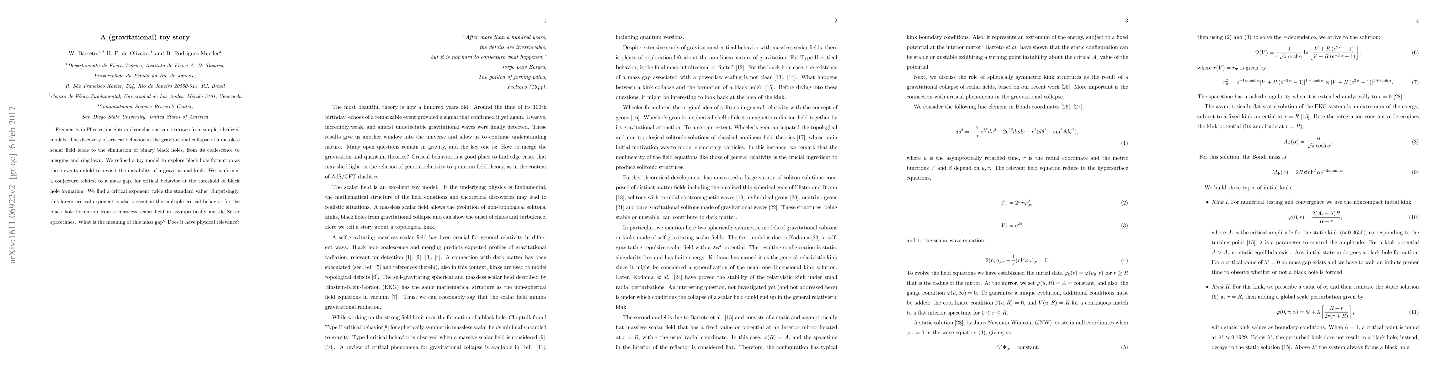 Frequently in Physics, insights and conclusions can be drawn from simple, idealized models. The discovery of critical behavior in the gravitational collapse of a massless scalar field leads to the simulation of binary black holes, from its coalescence to merging and ringdown. We refined a toy model to explore black hole formation as these events unfold to revisit the instability of a gravitational kink. We confirmed a conjecture related to a mass gap, for critical behavior at the threshold of black hole formation. We find a critical exponent twice the standard value. Surprisingly, this larger critical exponent is also present in the multiple critical behavior for the black hole formation from a massless scalar field in asymptotically anti-de Sitter spacetimes. What is the meaning of this mass gap? Does it have physical relevance?