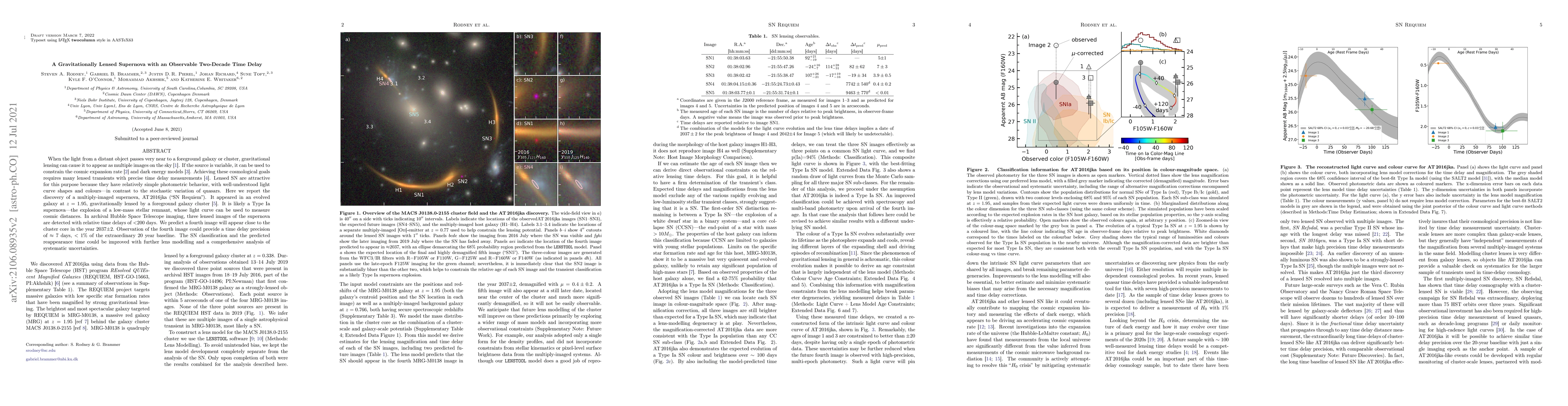 When the light from a distant object passes very near to a foreground galaxy or cluster, gravitational lensing can cause it to appear as multiple images on the sky. If the source is variable, it can be used to constrain the cosmic expansion rate and dark energy models. Achieving these cosmological goals requires many lensed transients with precise time delay measurements. Lensed supernovae (SN) are attractive for this purpose because they have relatively simple photometric behavior, with well-understood light curve shapes and colours $-$ in contrast to the stochastic variation of quasars. Here we report the discovery of a multiply-imaged supernova, AT2016jka ("SN Requiem"). It appeared in an evolved galaxy at $z=1.95$, gravitationally lensed by a foreground galaxy cluster. It is likely a Type Ia supernova $-$ the explosion of a low-mass stellar remnant, whose light curve can be used to measure cosmic distances. In archival Hubble Space Telescope imaging, three lensed images of the supernova are detected with relative time delays of $<$200 days. We predict a fourth image will appear close to the cluster core in the year 2037$\pm$2. Observation of the fourth image could provide a time delay precision of $\approx$7 days, $<1\%$ of the extraordinary 20 year baseline. The SN classification and the predicted reappearance time could be improved with further lens modelling and a comprehensive analysis of systematic uncertainties.