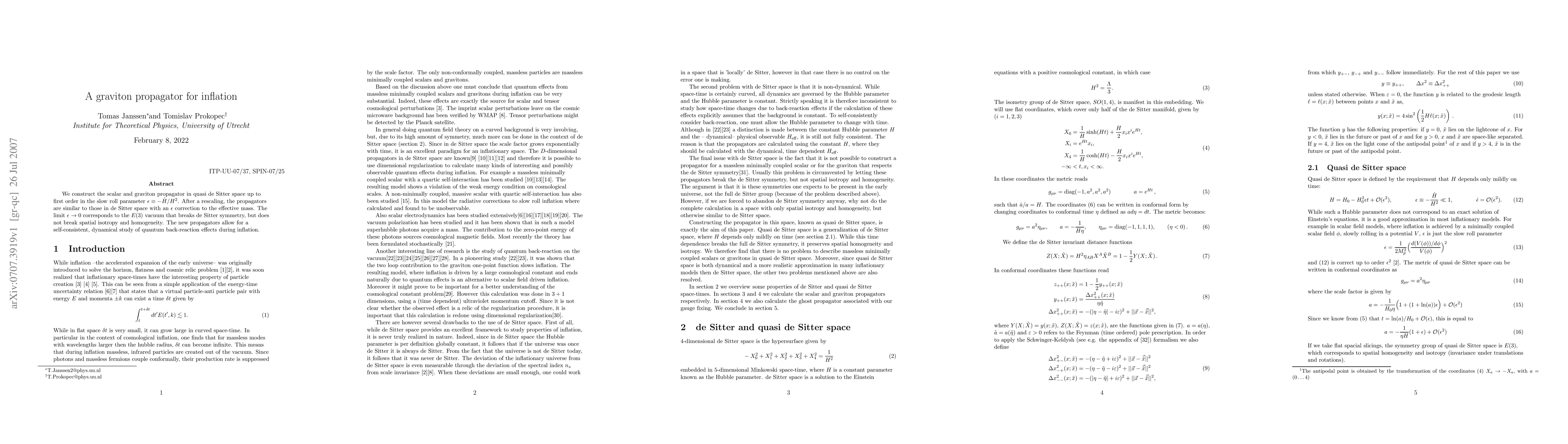 We construct the scalar and graviton propagator in quasi de Sitter space up to first order in the slow roll parameter $\epsilon\equiv -\dot{H}/H^2$. After a rescaling, the propagators are similar to those in de Sitter space with an $\epsilon$ correction to the effective mass. The limit $\epsilon\to 0$ corresponds to the E(3) vacuum that breaks de Sitter symmetry, but does not break spatial isotropy and homogeneity. The new propagators allow for a self-consistent, dynamical study of quantum back-reaction effects during inflation.