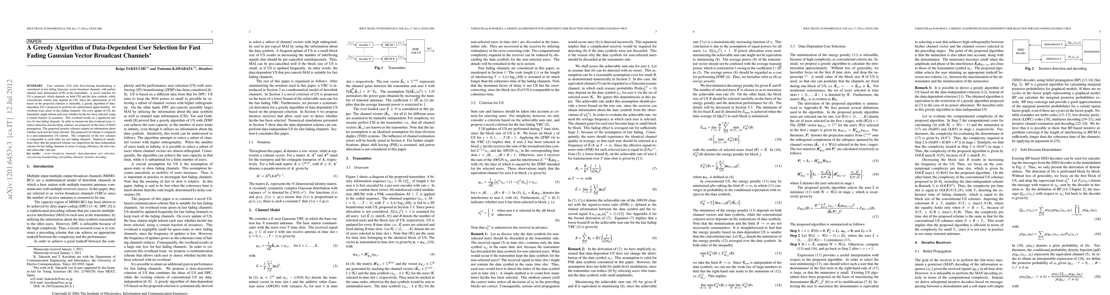 User selection (US) with Zero-forcing beamforming is considered in fast fading Gaussian vector broadcast channels with perfect channel state information (CSI) at the transmitter. A novel criterion for US is proposed, which depends on both CSI and the data symbols, while conventional criteria only depend on CSI. Since the optimization of US based on the proposed criterion is infeasible, a greedy algorithm of data-dependent US is proposed to perform the optimization approximately. An overhead issue arises in fast fading channels: On every update of US, the transmitter might inform each user whether he/she has been selected, using a certain fraction of resources. This overhead results in a significant rate loss for fast fading channels. In order to circumvent this overhead issue, iterative detection and decoding schemes are proposed on the basis of belief propagation. The proposed iterative schemes require no information about whether each user has been selected. The proposed US scheme is compared to a data-independent US scheme. The complexity of the two schemes is comparable to each other for fast fading channels. Numerical simulations show that the proposed scheme can outperform the data-independent scheme for fast fading channels in terms of energy efficiency, bit error rate, and achievable sum rate.