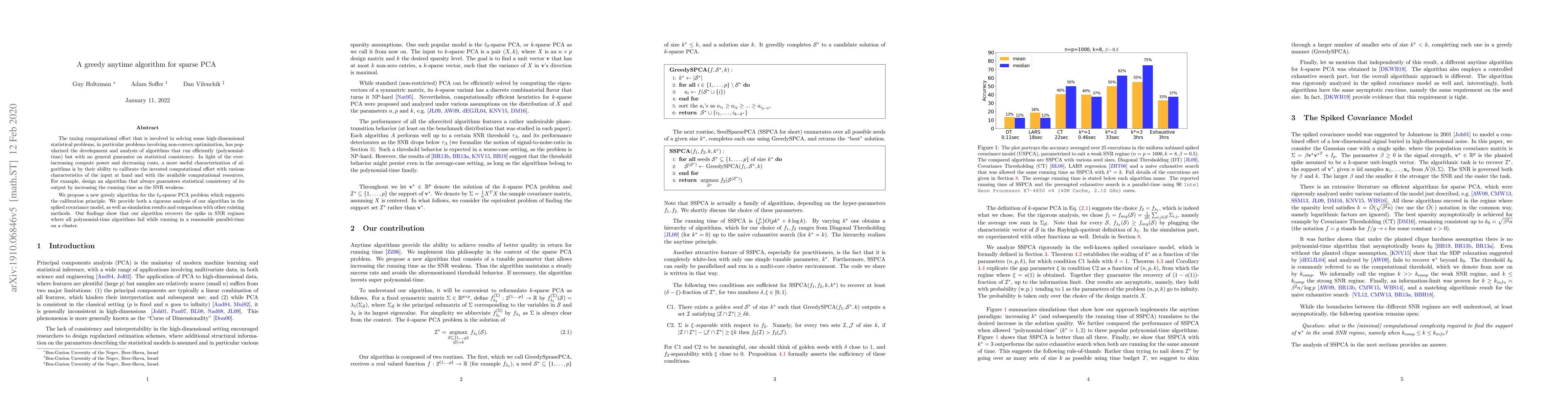 This paper proposes a new greedy algorithm for sparse PCA that allows for calibration of computational effort based on input characteristics and available resources, achieving statistical consistency by increasing runtime as signal-to-noise ratio weakens. The algorithm outperforms existing methods in recovering spikes in low-SNR regimes while maintaining reasonable parallel runtime.