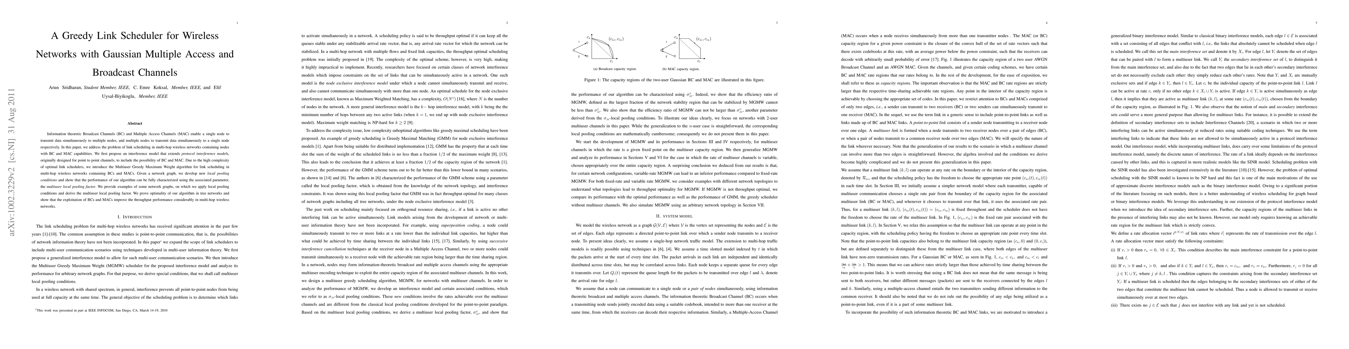 This paper proposes a Multiuser Greedy Maximum Weight algorithm for link scheduling in multihop wireless networks with Broadcast and Multiple Access Channel capabilities. The algorithm leverages local pooling conditions and a multiuser local pooling factor to optimize throughput, demonstrating significant performance improvements in tree networks.