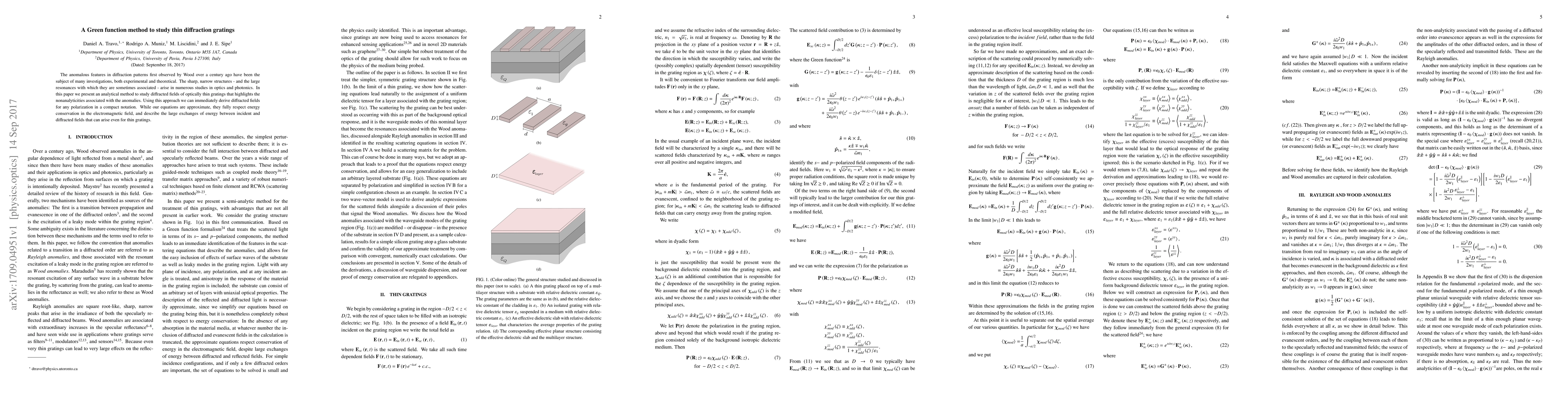 Researchers develop a new method to analyze thin diffraction gratings using green functions, revealing non-analytic features that lead to sharp structures and large energy exchanges.