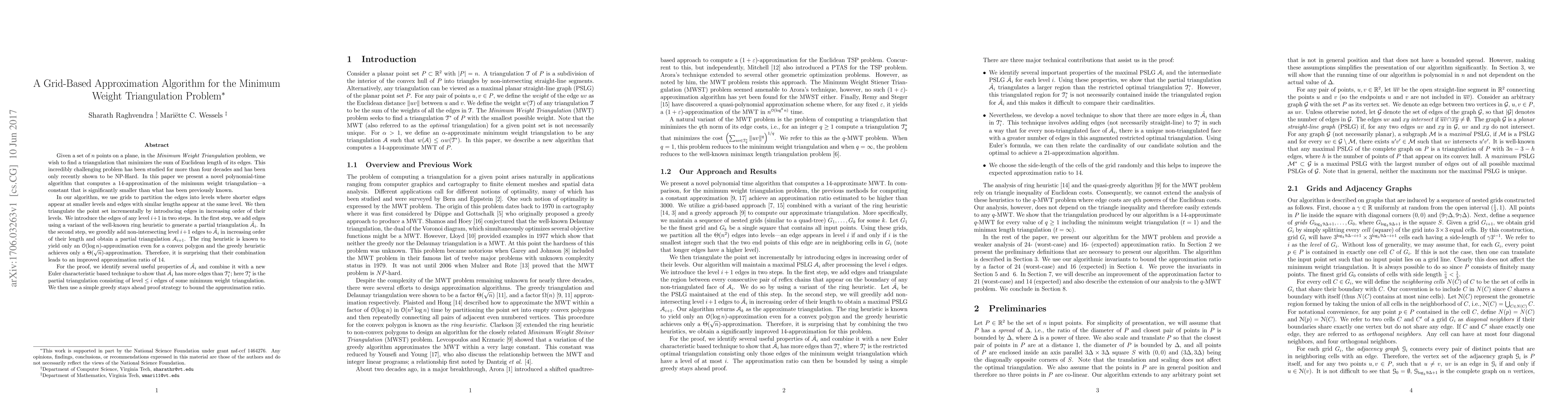 This paper presents a novel polynomial-time algorithm for the Minimum Weight Triangulation problem, achieving a $14$-approximation, significantly better than previous methods. The algorithm uses grids to partition edges and incrementally triangulates the point set by combining a ring heuristic and a greedy approach.