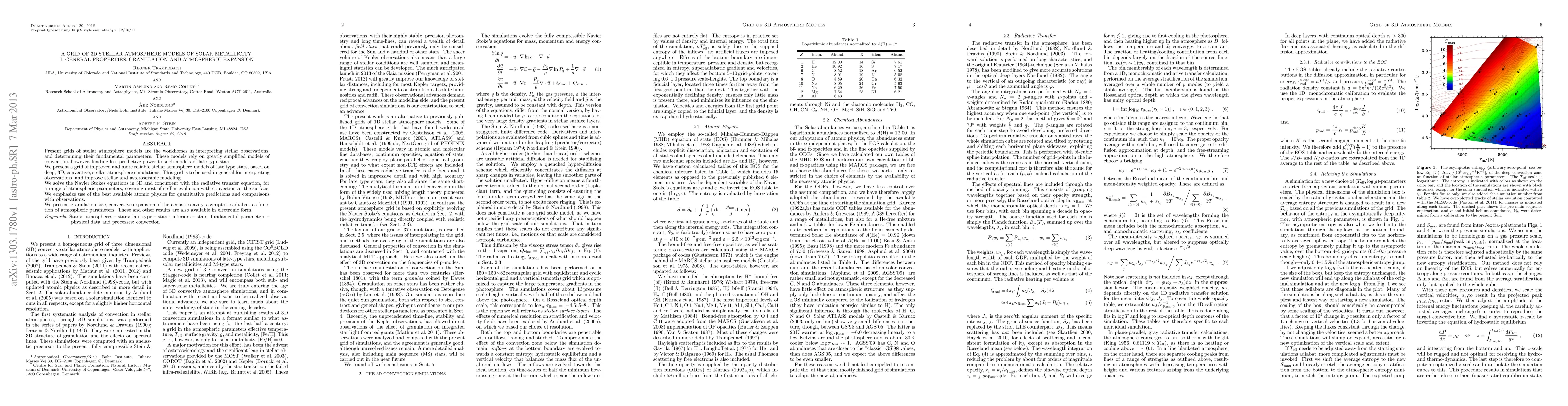 Present grids of stellar atmosphere models are the workhorses in interpreting stellar observations, and determining their fundamental parameters. These models rely on greatly simplified models of convection, however, lending less predictive power to such models of late type stars. We present a grid of improved and more reliable stellar atmosphere models of late type stars, based on deep, 3D, convective, stellar atmosphere simulations. This grid is to be used in general for interpreting observations, and improve stellar and asteroseismic modeling. We solve the Navier Stokes equations in 3D and concurrent with the radiative transfer equation, for a range of atmospheric parameters, covering most of stellar evolution with convection at the surface. We emphasize use of the best available atomic physics for quantitative predictions and comparisons with observations. We present granulation size, convective expansion of the acoustic cavity, asymptotic adiabat, as function of atmospheric parameters. These and other results are also available in electronic form.