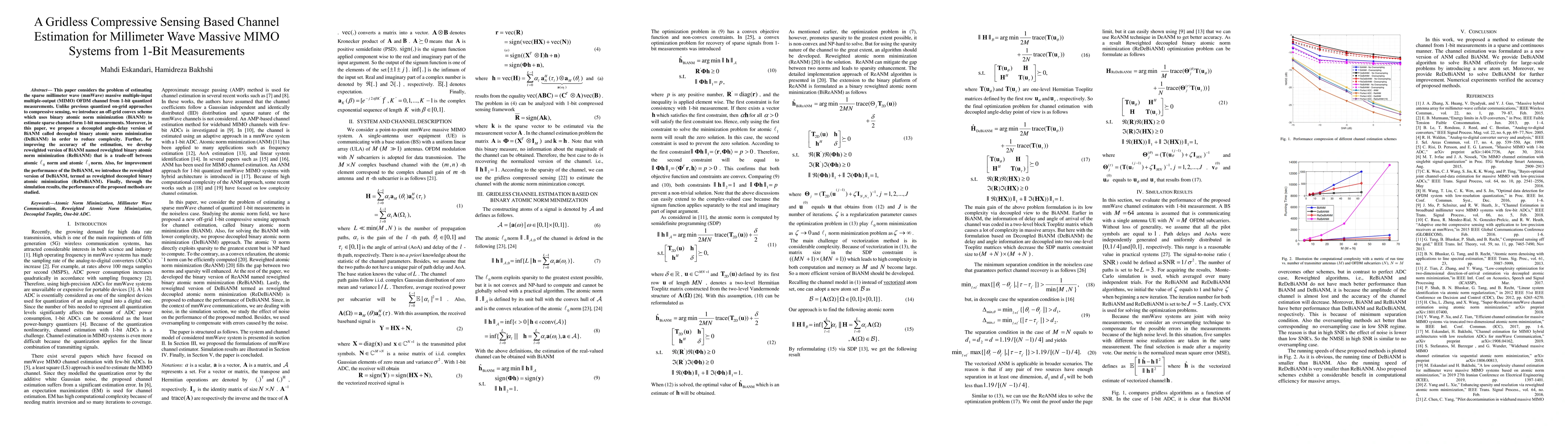 This paper considers the problem of estimating the sparse millimeter wave (mmWave) massive multiple-input multiple-output (MIMO) OFDM channel from 1-bit quantized measurements. Unlike previous quantized on-grid approaches to compressive sensing, we introduce an off-grid convex scheme which uses binary atomic norm minimization (BiANM) to estimate sparse channel form 1-bit measurements. Moreover, in this paper, we propose a decoupled angle-delay version of BiANM called decoupled binary atomic norm minimization (DeBiANM) in order to reduce complexity. Further, for improving the accuracy of the estimation, we develop reweighted version of BiANM named reweighted binary atomic norm minimization (ReBiANM) that is a trade-off between atomic $\ell_0$ norm and atomic $\ell_1$ norm. Also, for improvement the performance of the DeBiANM, we introduce the reweighted version of DeBiANM, termed as reweighted decoupled binary atomic minimization (ReDeBiANM). Finally, through the simulation results, the performance of the proposed methods are studied.