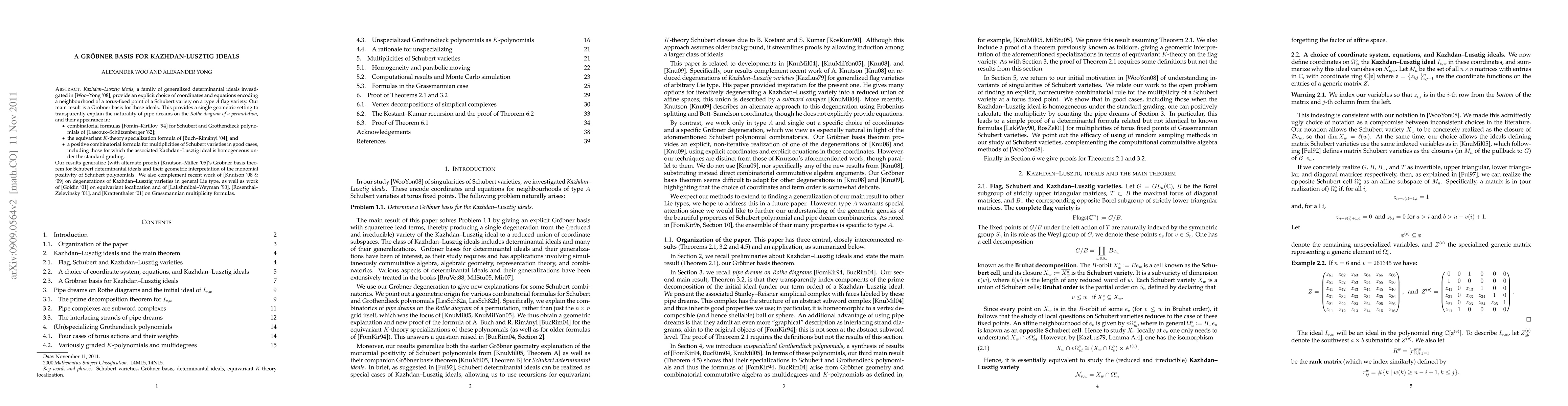Kazhdan-Lusztig ideals, a family of generalized determinantal ideals investigated in [Woo-Yong '08], provide an explicit choice of coordinates and equations encoding a neighbourhood of a torus-fixed point of a Schubert variety on a type A flag variety. Our main result is a Grobner basis for these ideals. This provides a single geometric setting to transparently explain the naturality of pipe dreams on the Rothe diagram of a permutation, and their appearance in: * combinatorial formulas [Fomin-Kirillov '94] for Schubert and Grothendieck polynomials of [Lascoux-Schutzenberger '82]; * the equivariant K-theory specialization formula of [Buch-Rimanyi '04]; and * a positive combinatorial formula for multiplicities of Schubert varieties in good cases, including those for which the associated Kazhdan-Lusztig ideal is homogeneous under the standard grading. Our results generalize (with alternate proofs) [Knutson-Miller '05]'s Grobner basis theorem for Schubert determinantal ideals and their geometric interpretation of the monomial positivity of Schubert polynomials. We also complement recent work of [Knutson '08,'09] on degenerations of Kazhdan-Lusztig varieties in general Lie type, as well as work of [Goldin '01] on equivariant localization and of [Lakshmibai-Weyman '90], [Rosenthal-Zelevinsky '01], and [Krattenthaler '01] on Grassmannian multiplicity formulas.