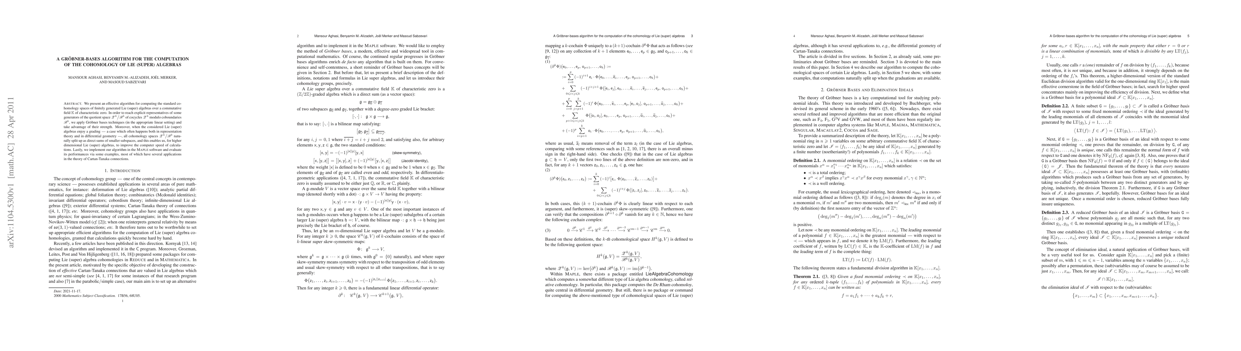 We present an effective algorithm for computing the standard cohomology spaces of finitely generated Lie (super) algebras over a commutative field K of characteristic zero. In order to reach explicit representatives of some generators of the quotient space Z^k/B^k of cocycles Z^k modulo coboundaries B^k, we apply Groebner bases techniques (in the appropriate linear setting) and take advantage of their strength. Moreover, when the considered Lie (super) algebras enjoy a grading -- a case which often happens both in representation theory and in differential geometry --, all cohomology spaces Z^k/B^k naturally split up as direct sums of smaller subspaces, and this enables us, for higher dimensional Lie (super) algebras, to improve the computer speed of calculations. Lastly, we implement our algorithm in the Maple software and evaluate its performances via some examples, most of which have several applications in the theory of Cartan-Tanaka connections.