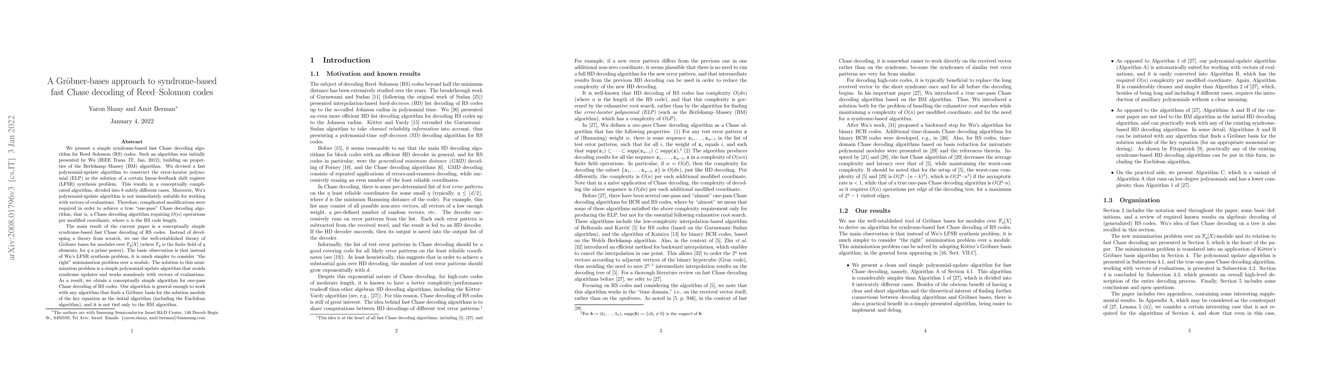 This paper proposes a simple syndrome-based fast Chase decoding algorithm for Reed-Solomon codes using Groebner bases, simplifying the approach by avoiding the complex LFSR synthesis problem and allowing for seamless vector evaluation. The method provides a conceptually straightforward one-pass decoding algorithm suitable for various initial algorithms.