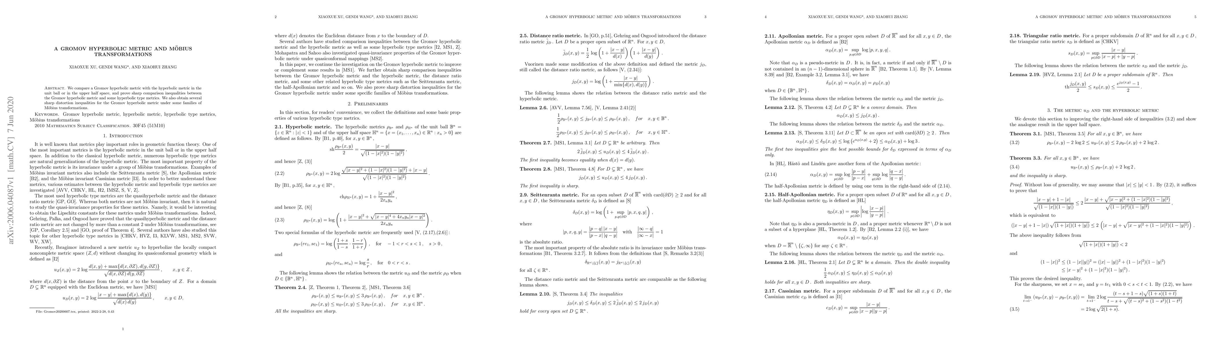 This paper compares Gromov hyperbolic metrics with classical hyperbolic metrics in the unit ball and upper half space, establishing sharp comparison inequalities and distortion inequalities for Gromov hyperbolic metrics under Möbius transformations.