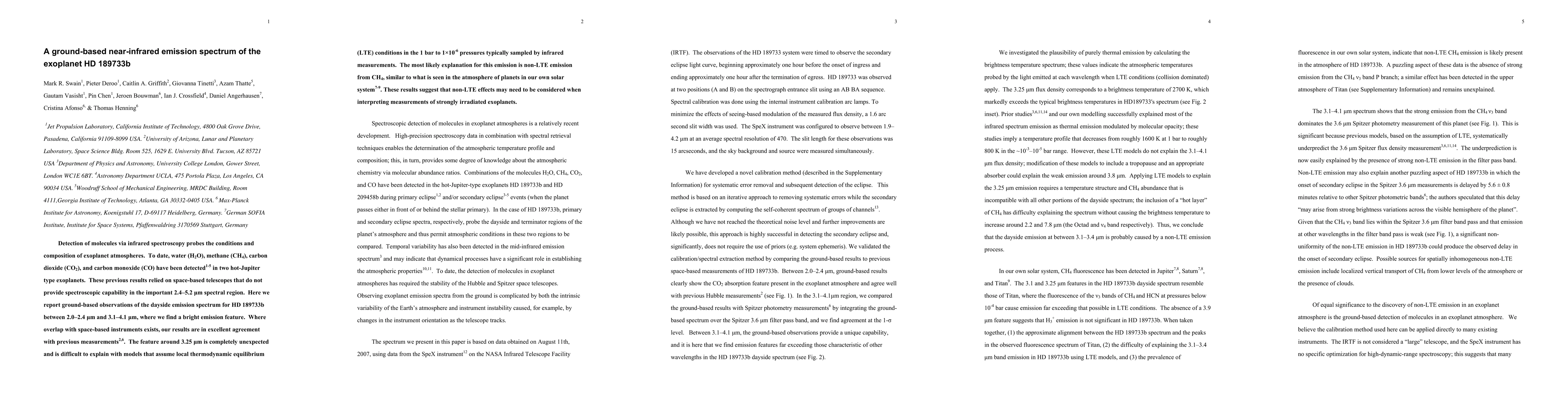 This paper reports ground-based near-infrared observations of the exoplanet HD 189733b, detecting unexpected emission features that challenge current models assuming local thermodynamic equilibrium. The findings suggest non-LTE effects may significantly impact interpretations of exoplanet atmospheres.