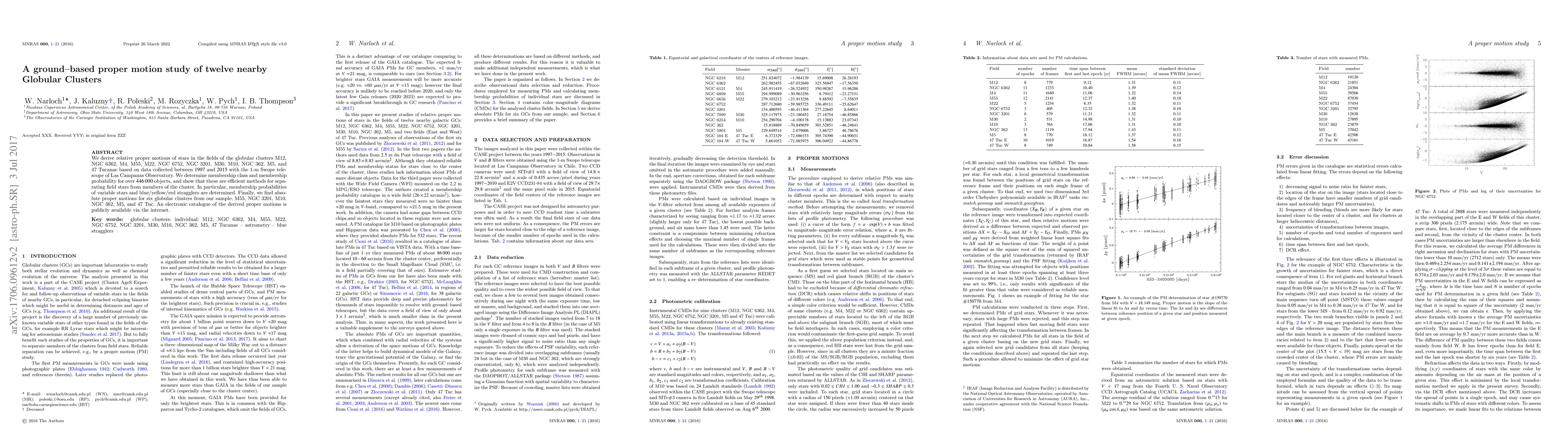 This paper provides relative proper motions for stars in twelve nearby globular clusters, determined from data collected over 18 years. It efficiently separates cluster members from field stars using membership probabilities, and reports absolute proper motions for six clusters, with an electronic catalogue available online.