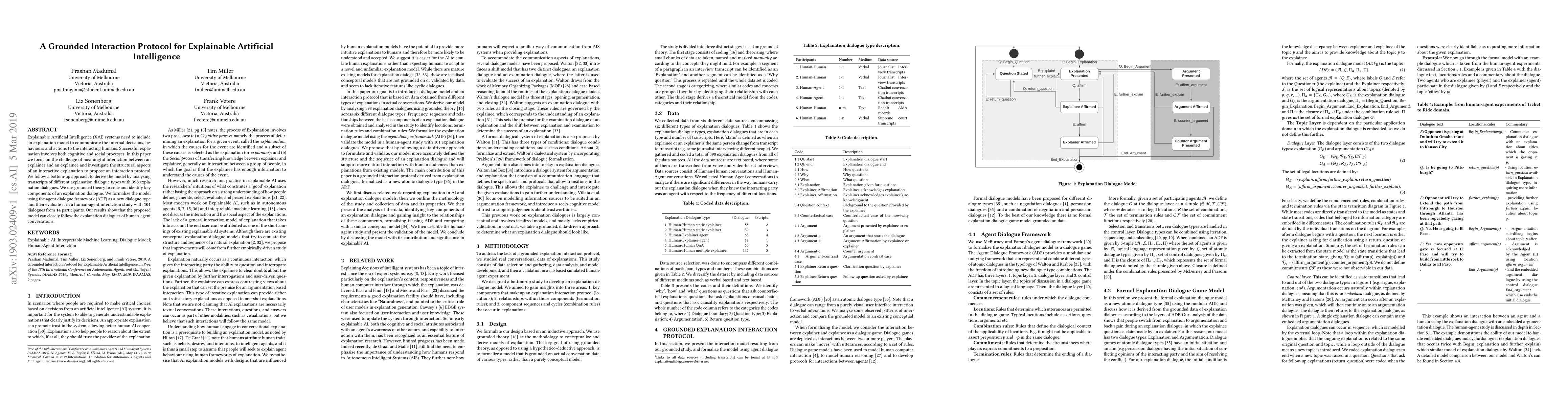 Explainable Artificial Intelligence (XAI) systems need to include an explanation model to communicate the internal decisions, behaviours and actions to the interacting humans. Successful explanation involves both cognitive and social processes. In this paper we focus on the challenge of meaningful interaction between an explainer and an explainee and investigate the structural aspects of an interactive explanation to propose an interaction protocol. We follow a bottom-up approach to derive the model by analysing transcripts of different explanation dialogue types with 398 explanation dialogues. We use grounded theory to code and identify key components of an explanation dialogue. We formalize the model using the agent dialogue framework (ADF) as a new dialogue type and then evaluate it in a human-agent interaction study with 101 dialogues from 14 participants. Our results show that the proposed model can closely follow the explanation dialogues of human-agent conversations.