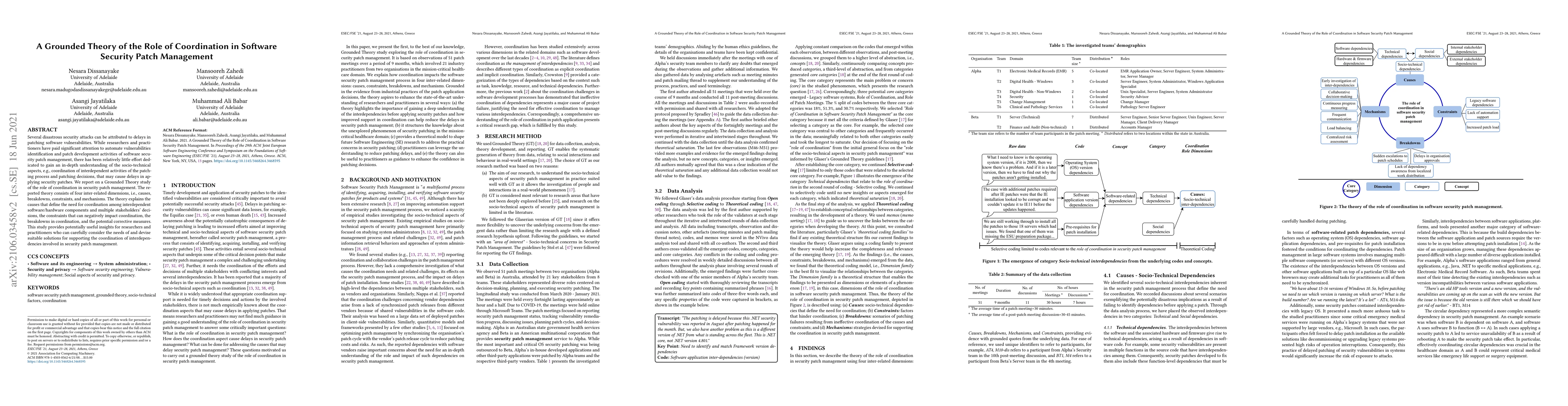 This study develops a Grounded Theory explaining the role of coordination in software security patch management, focusing on causes, breakdowns, constraints, and mechanisms. It aims to provide insights to mitigate delays in applying security patches by understanding the socio-technical aspects of the patching process.