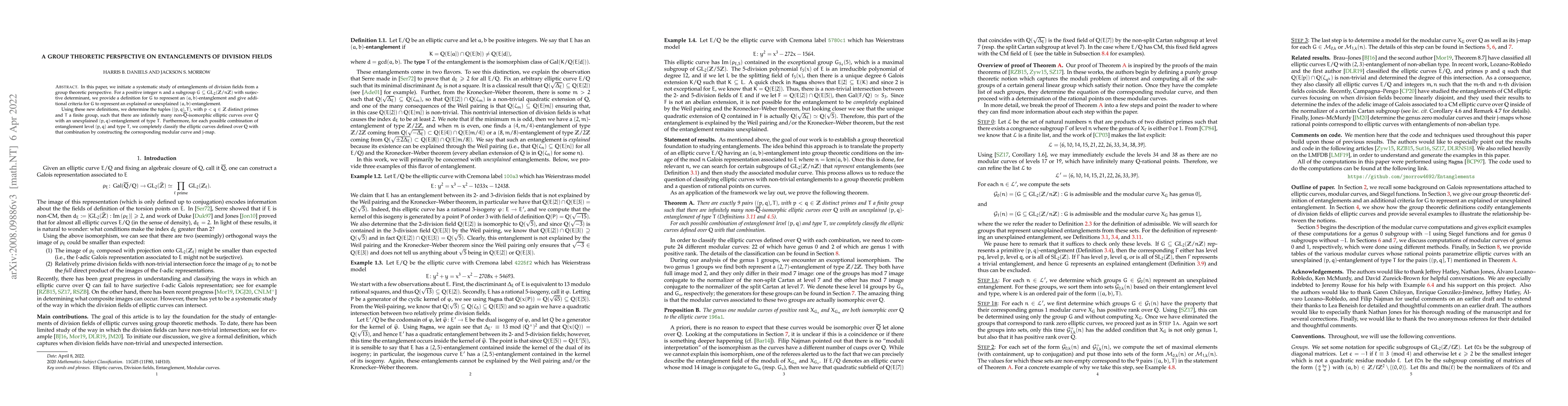This paper studies entanglements of division fields using group theory, classifying elliptic curves over Q with specific types of entanglements. It provides a framework for understanding the relationships between primes and group structures in these curves.
