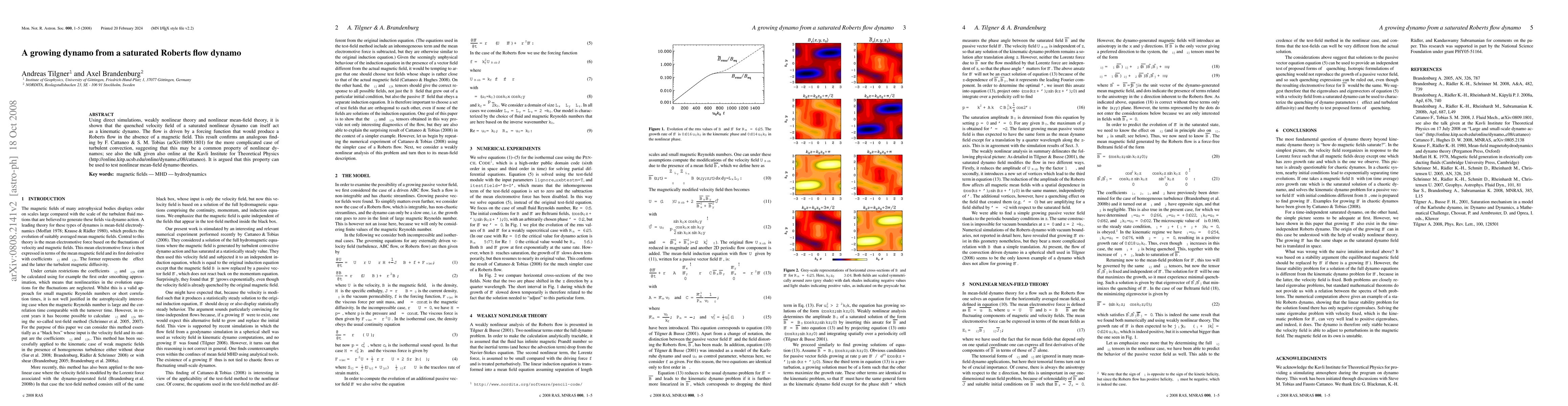 Using direct simulations, weakly nonlinear theory and nonlinear mean-field theory, it is shown that the quenched velocity field of a saturated nonlinear dynamo can itself act as a kinematic dynamo. The flow is driven by a forcing function that would produce a Roberts flow in the absence of a magnetic field. This result confirms an analogous finding by F. Cattaneo & S. M. Tobias (arXiv:0809.1801) for the more complicated case of turbulent convection, suggesting that this may be a common property of nonlinear dynamos; see also the talk given also online at the Kavli Institute for Theoretical Physics (http://online.kitp.ucsb.edu/online/dynamo_c08/cattaneo). It is argued that this property can be used to test nonlinear mean-field dynamo theories.