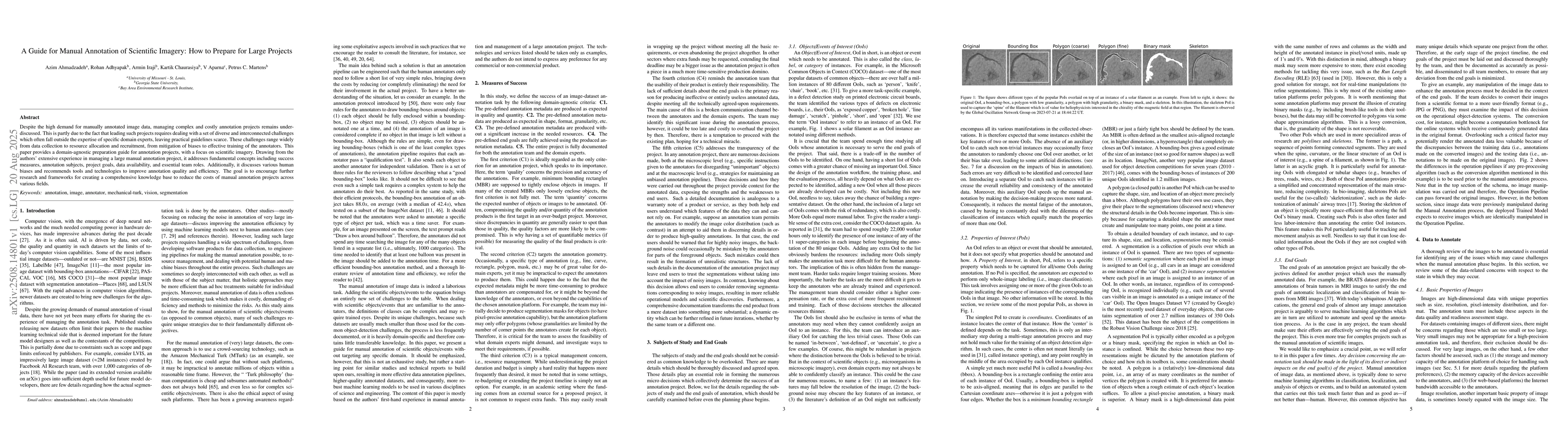 This paper provides a domain-agnostic preparation guide for annotation projects, focusing on scientific imagery, covering aspects like success measures, annotation subjects, project goals, data availability, team roles, biases, and recommended tools.