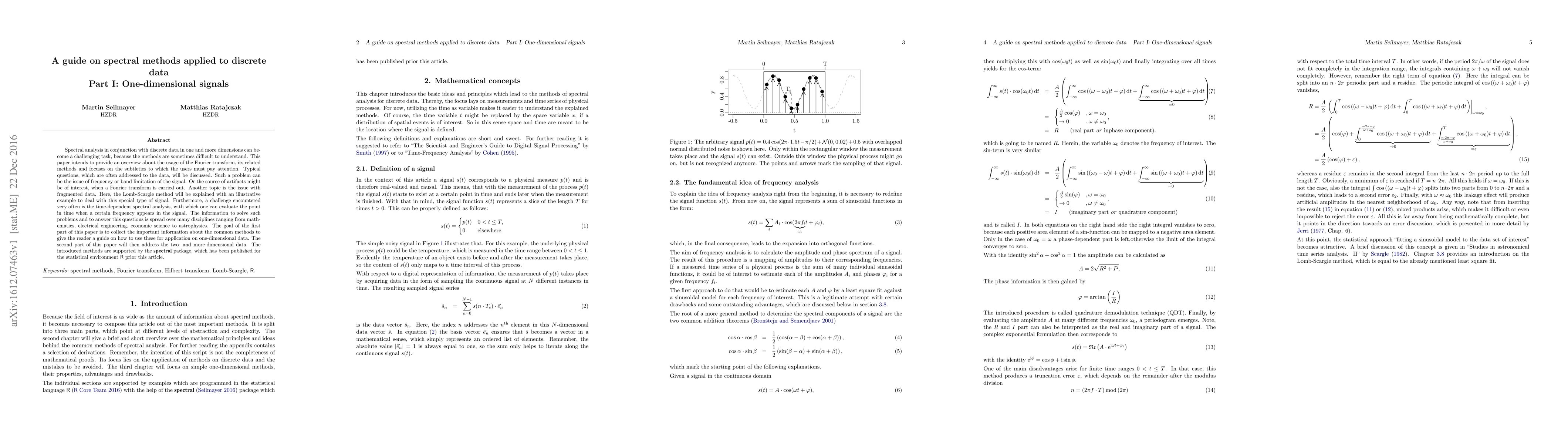 This paper provides a guide to using spectral methods with discrete data in one dimension, covering topics such as frequency limitation, artifact sources, and time-dependent analysis, aiming to make these complex concepts more accessible.
