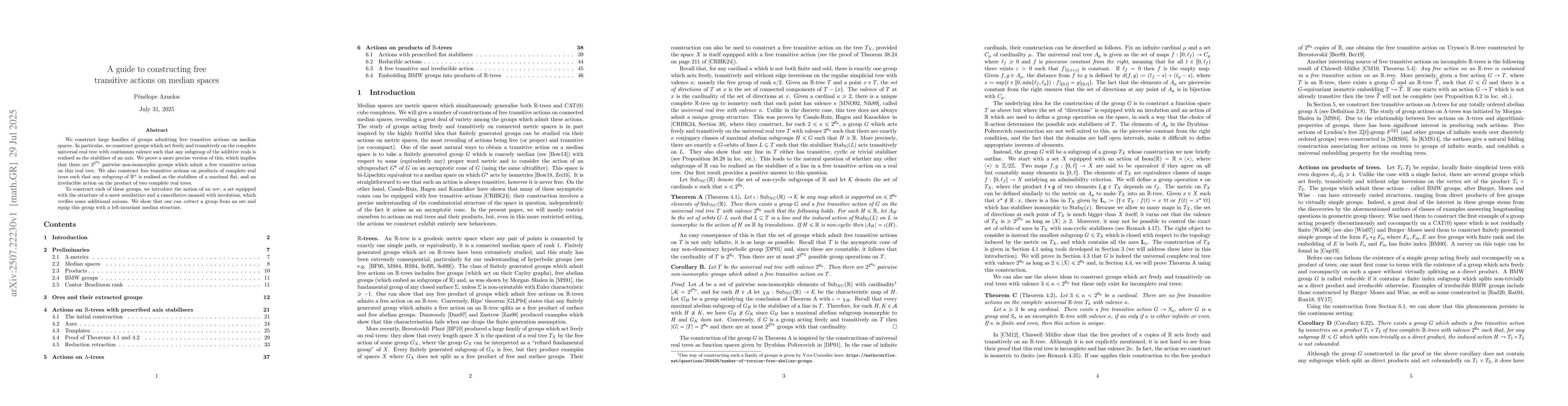 We construct large families of groups admitting free transitive actions on median spaces. In particular, we construct groups which act freely and transitively on the complete universal real tree with continuum valence such that any subgroup of the additive reals is realised as the stabiliser of an axis. We prove a more precise version of this, which implies that there are $2^{2^{\aleph_0}}$ pairwise non-isomorphic groups which admit a free transitive action on this real tree. We also construct free transitive actions on products of complete real trees such that any subgroup of $\mathbb{R}^n$ is realised as the stabiliser of a maximal flat, and an irreducible action on the product of two complete real trees. To construct each of these groups, we introduce the notion of an \textit{ore}: a set equipped with the structure of a meet semilattice and a cancellative monoid with involution, which verifies some additional axioms. We show that one can \textit{extract} a group from an ore and equip this group with a left-invariant median structure.