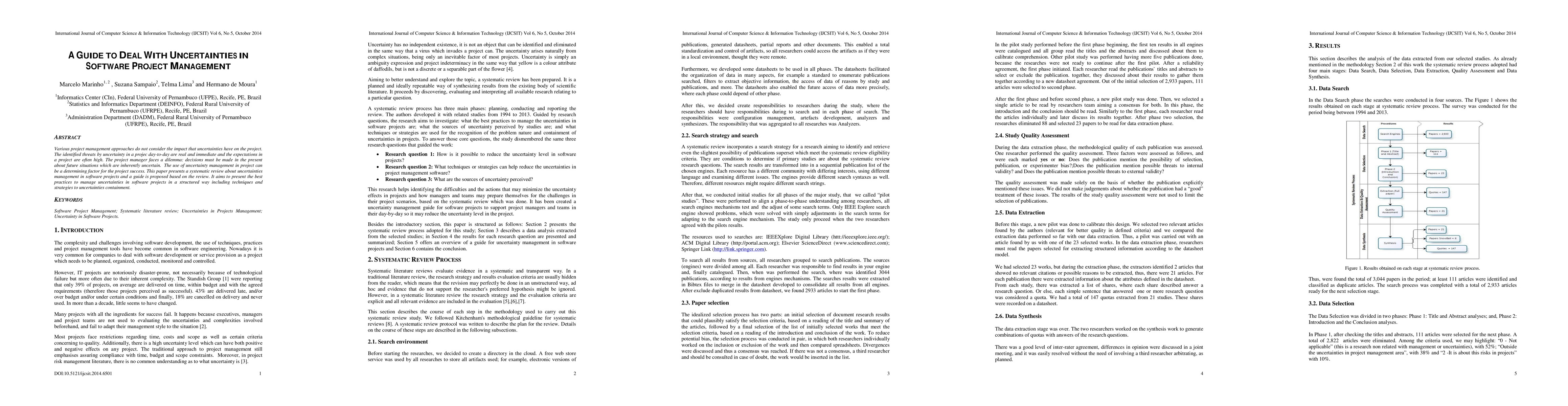Various project management approaches do not consider the impact that uncertainties have on the project. The identified threats by uncertainty in a projec day-to-day are real and immediate and the expectations in a project are often high. The project manager faces a dilemma: decisions must be made in the present about future situations which are inherently uncertain. The use of uncertainty management in project can be a determining factor for the project success. This paper presents a systematic review about uncertainties management in software projects and a guide is proposed based on the review. It aims to present the best practices to manage uncertainties in software projects in a structured way including techniques and strategies to uncertainties containment.