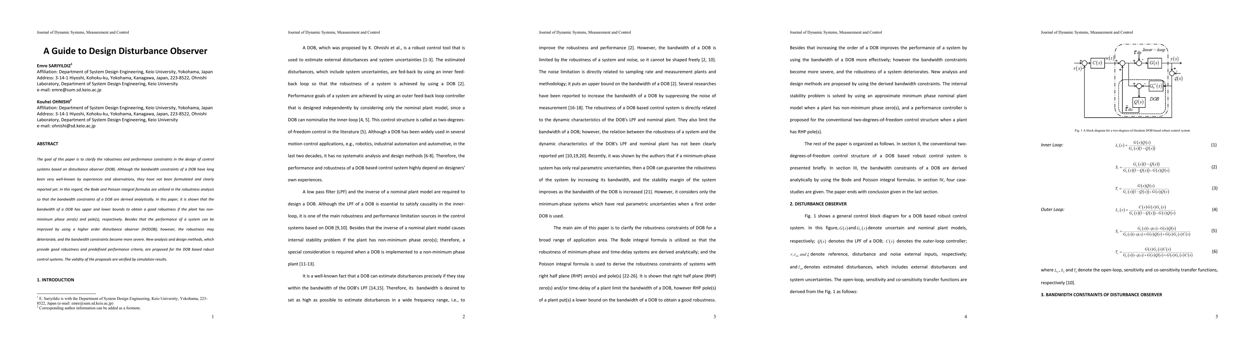 The goal of this paper is to clarify the robustness and performance constraints in the design of control systems based on disturbance observer (DOB). Although the bandwidth constraints of a DOB have long been very well-known by experiences and observations, they have not been formulated and clearly reported yet. In this regard, the Bode and Poisson integral formulas are utilized in the robustness analysis so that the bandwidth constraints of a DOB are derived analytically. In this paper, it is shown that the bandwidth of a DOB has upper and lower bounds to obtain good robustness if the plant has non-minimum phase zero(s) and pole(s), respectively. Besides that the performance of a system can be improved by using a higher-order disturbance observer (HODOB); however, the robustness may deteriorate, and the bandwidth constraints become more severe. New analysis and design methods, which provide good robustness and predefined performance criteria, are proposed for the DOB based robust control systems. The validity of the proposals are verified by simulation results.
