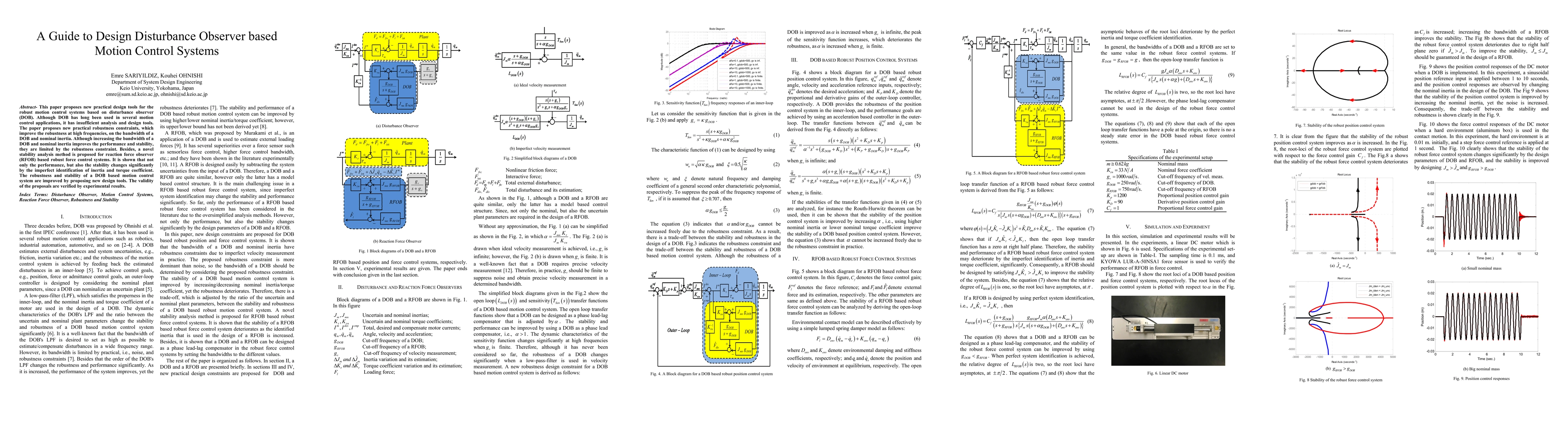 This paper introduces new design tools for robust motion control systems using disturbance observers, enhancing robustness at high frequencies and proposing a novel stability analysis method for reaction force observer-based systems. Experimental results validate the effectiveness of the proposed improvements.