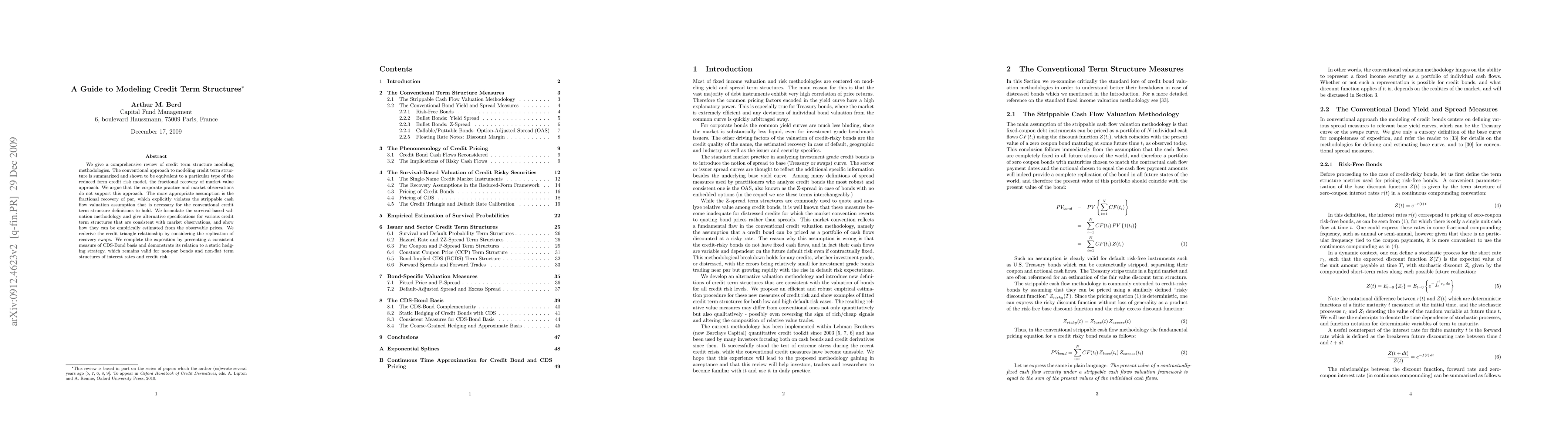 We give a comprehensive review of credit term structure modeling methodologies. The conventional approach to modeling credit term structure is summarized and shown to be equivalent to a particular type of the reduced form credit risk model, the fractional recovery of market value approach. We argue that the corporate practice and market observations do not support this approach. The more appropriate assumption is the fractional recovery of par, which explicitly violates the strippable cash flow valuation assumption that is necessary for the conventional credit term structure definitions to hold. We formulate the survival-based valuation methodology and give alternative specifications for various credit term structures that are consistent with market observations, and show how they can be empirically estimated from the observable prices. We rederive the credit triangle relationship by considering the replication of recovery swaps. We complete the exposition by presenting a consistent measure of CDS-Bond basis and demonstrate its relation to a static hedging strategy, which remains valid for non-par bonds and non-flat term structures of interest rates and credit risk.