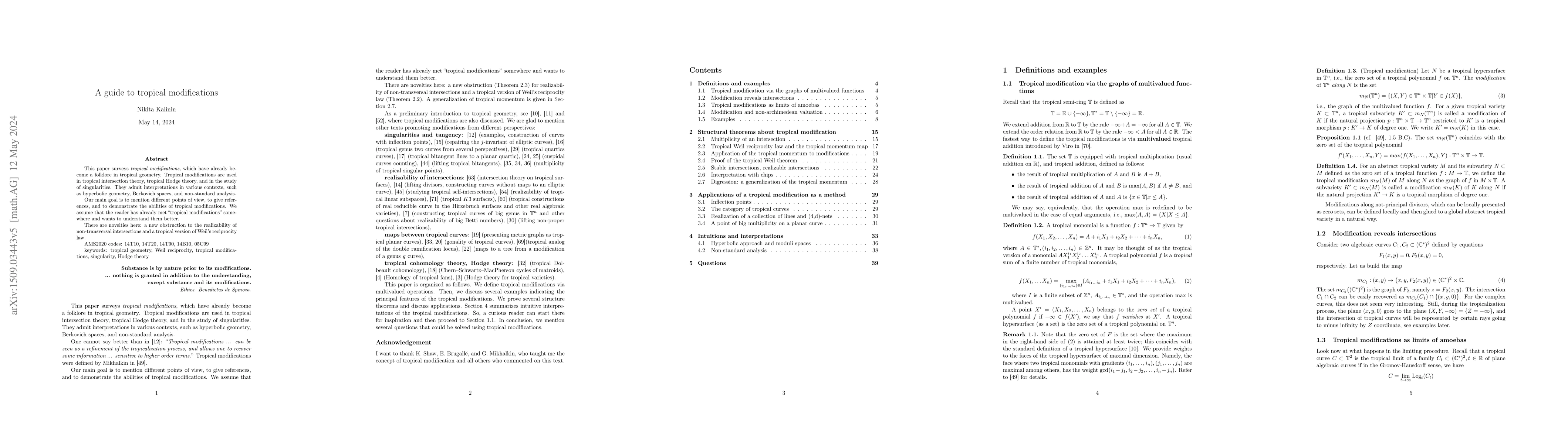 This paper provides an overview of tropical modifications in tropical geometry, highlighting their applications in intersection theory, Hodge theory, and singularity studies. It introduces novel findings, including a new obstruction for non-transversal intersections and a tropical version of Weil's reciprocity law, aiming to deepen the reader's understanding of these versatile mathematical concepts.