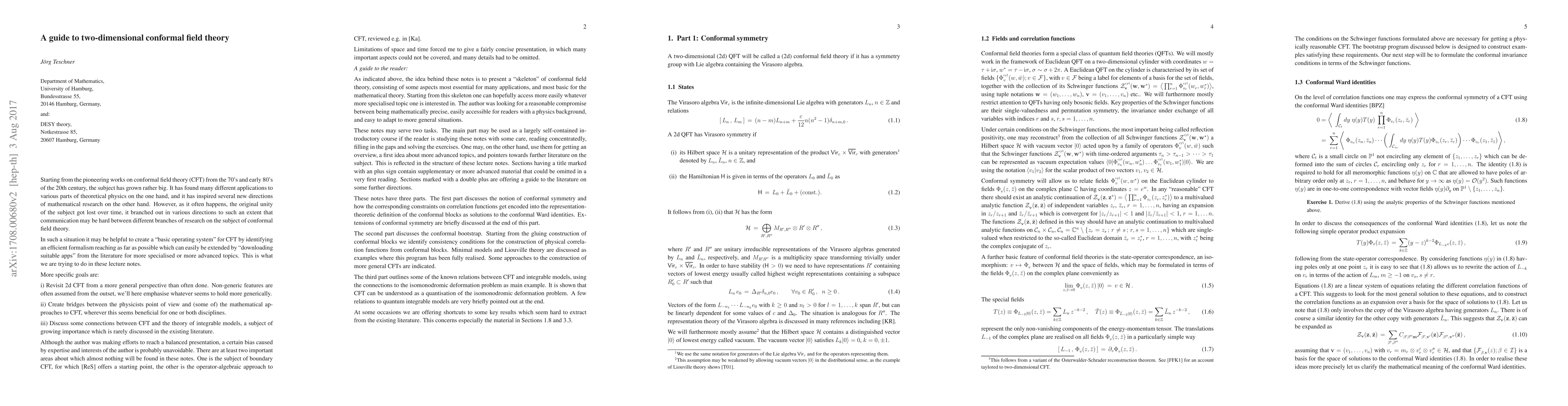This paper reviews two-dimensional conformal field theory, providing a guide to its basic formalism and advanced topics such as genus surfaces and the isomonodromic deformation problem.
