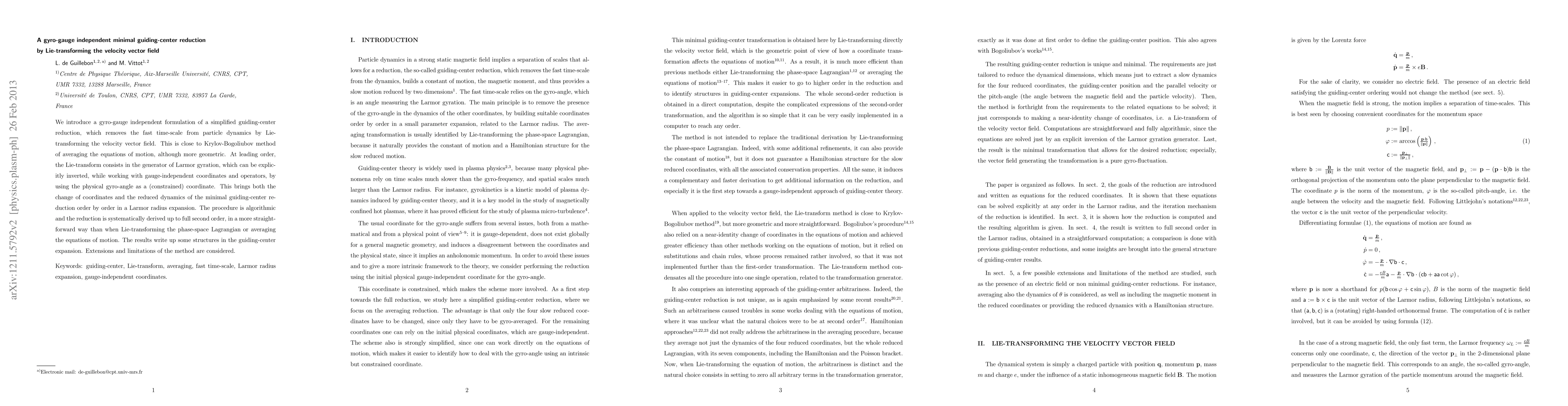 A new method for simplifying particle dynamics using Lie-transforms has been developed, removing fast time-scales in a gauge-independent approach. This allows for systematic derivation of reduced dynamics to full second order.