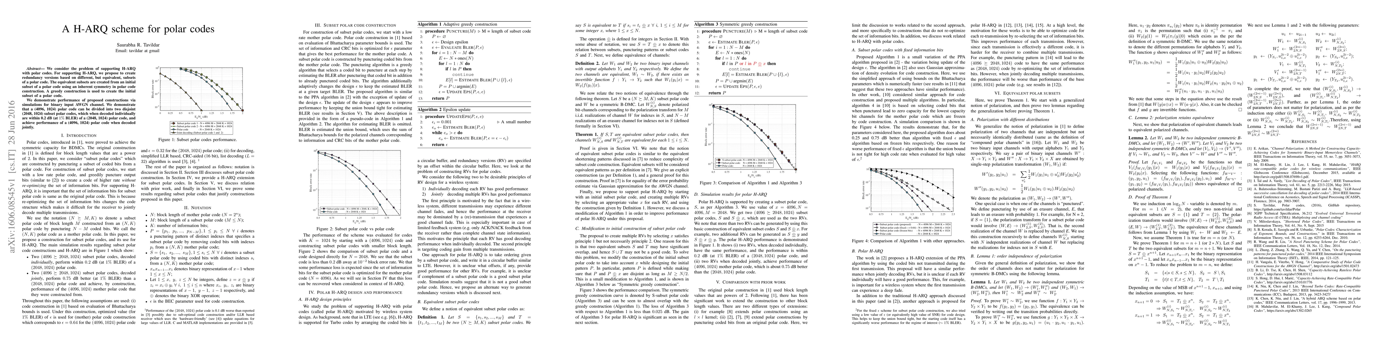 This paper proposes a method to support Hybrid Automatic Repeat Request (H-ARQ) with polar codes by creating redundancy versions from equivalent subsets of a polar code. Simulation results show that a (4096, 1024) polar code can be split into two (2048, 1024) subset codes, maintaining performance close to a single (2048, 1024) code when decoded jointly.