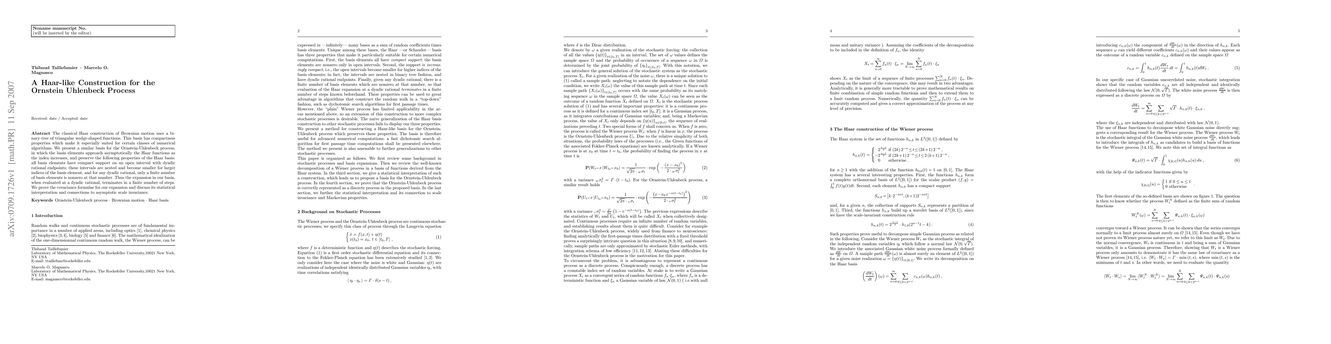 The classical Haar construction of Brownian motion uses a binary tree of triangular wedge-shaped functions. This basis has compactness properties which make it especially suited for certain classes of numerical algorithms. We present a similar basis for the Ornstein-Uhlenbeck process, in which the basis elements approach asymptotically the Haar functions as the index increases, and preserve the following properties of the Haar basis: all basis elements have compact support on an open interval with dyadic rational endpoints; these intervals are nested and become smaller for larger indices of the basis element, and for any dyadic rational, only a finite number of basis elements is nonzero at that number. Thus the expansion in our basis, when evaluated at a dyadic rational, terminates in a finite number of steps. We prove the covariance formulae for our expansion and discuss its statistical interpretation and connections to asymptotic scale invariance.
