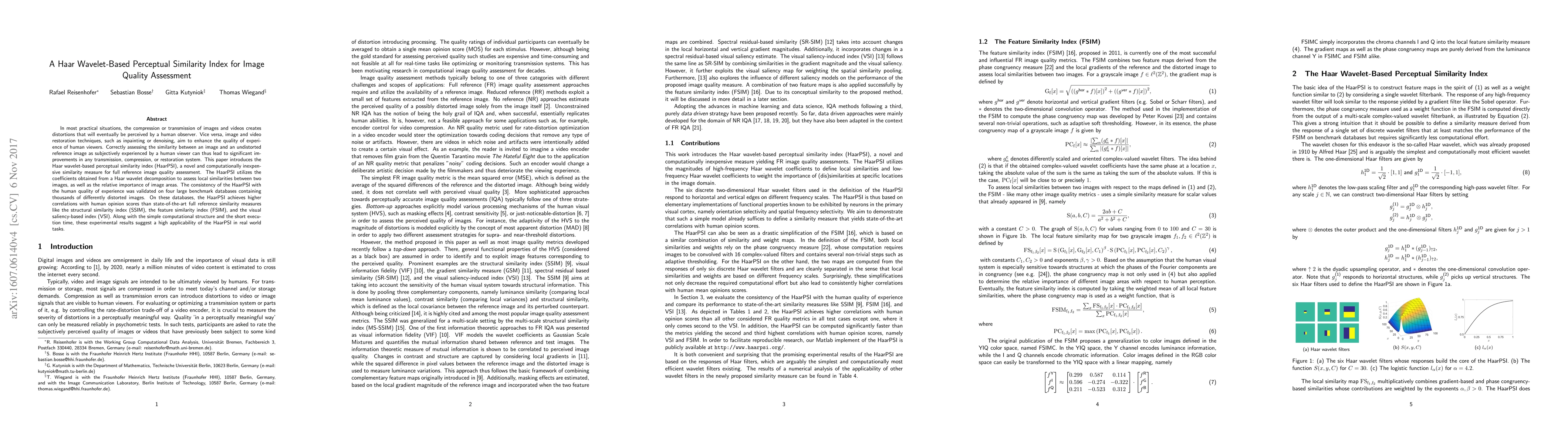 This paper introduces the Haar wavelet-based perceptual similarity index (HaarPSI) for assessing image quality, showing higher correlation with human perception compared to existing methods like SSIM and FSIM. The HaarPSI leverages Haar wavelet decomposition for efficient and accurate local similarity assessment.