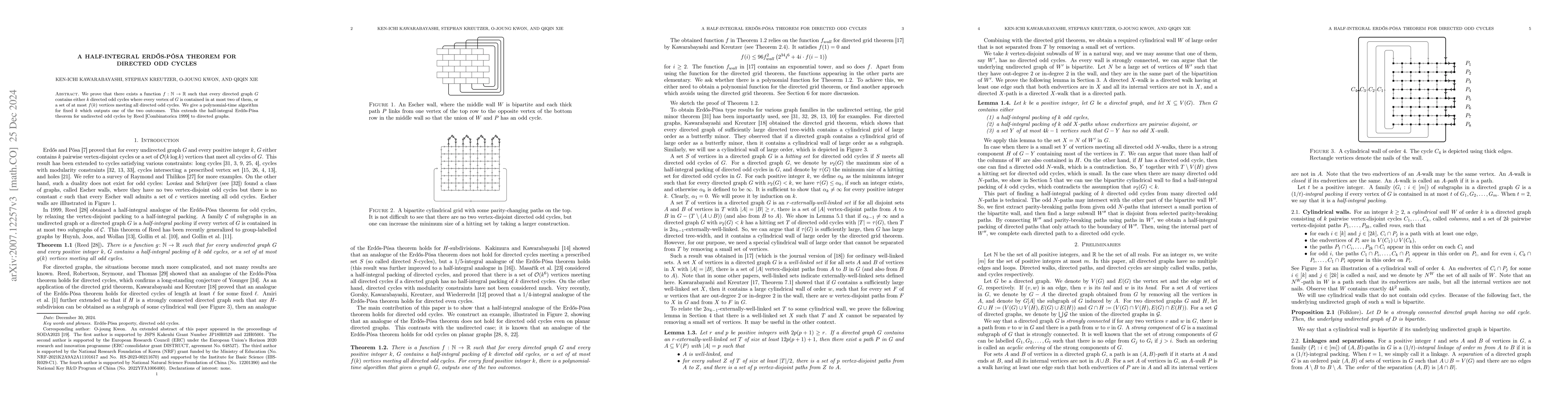 This paper proves a directed version of the half-integral Erdős-Pósa theorem, showing that any directed graph either contains $k$ vertex-disjoint directed odd cycles or a vertex set of size $f(k)$ intersecting all such cycles. It also provides a polynomial-time algorithm to determine the existence of $k$ such cycles or the necessity of a vertex set of size at most $f(k)$.