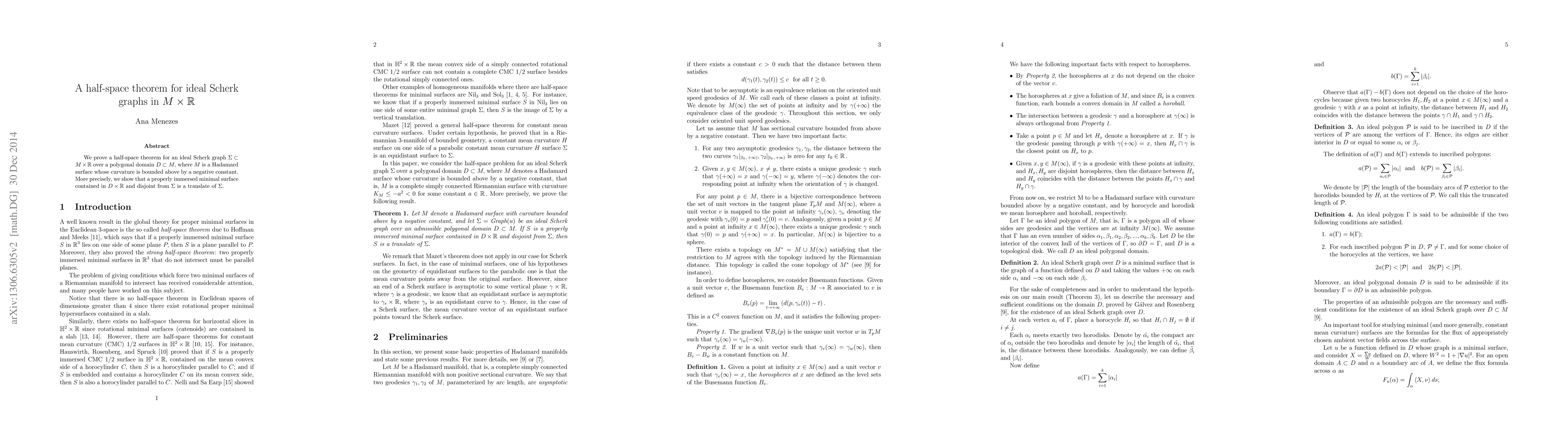 We prove a half-space theorem for an ideal Scherk graph $\Sigma\subset M\times\mathbb R$ over a polygonal domain $D\subset M,$ where $M$ is a Hadamard surface whose curvature is bounded above by a negative constant. More precisely, we show that a properly immersed minimal surface contained in $D\times\mathbb R$ and disjoint from $\Sigma$ is a translate of $\Sigma.$