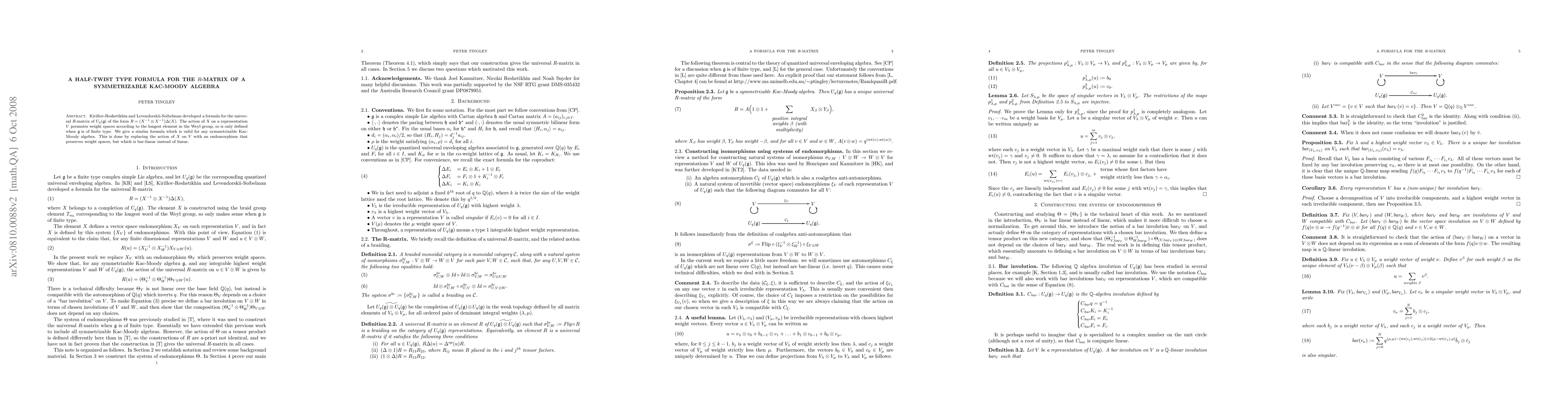 Kirillov-Reshetikhin and Levendorskii-Soibelman developed a formula for the universal R-matrix of the form R=(X^{-1} \otimes X^{-1}) \Delta(X). The action of X on a representation V permutes weight spaces according to the longest element in the Weyl group, so is only defined in finite type. We give a similar formula which is valid for the quantized universal enveloping algebra of any symmetrizable Kac-Moody algebra. This is done by replacing the action of X on V with an endomorphism that preserves weight spaces, but which is bar-linear instead of linear.