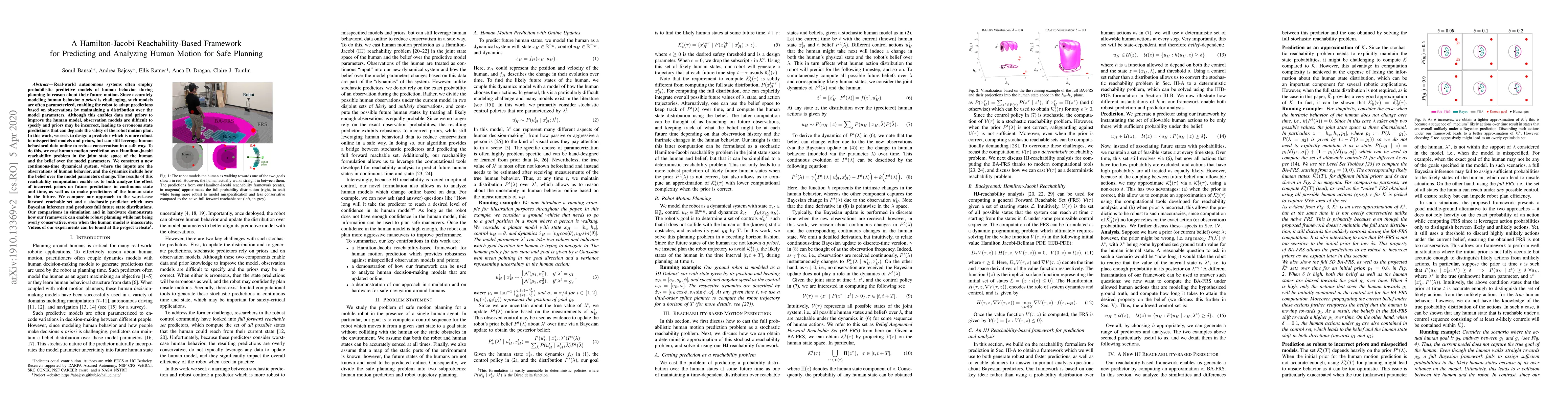 This paper proposes a Hamilton-Jacobi reachability-based framework for predicting human motion to enable safe autonomous system planning. The approach constructs a continuous-time dynamical system to robustly predict human behavior despite misspecified models and priors, balancing safety and prediction accuracy.