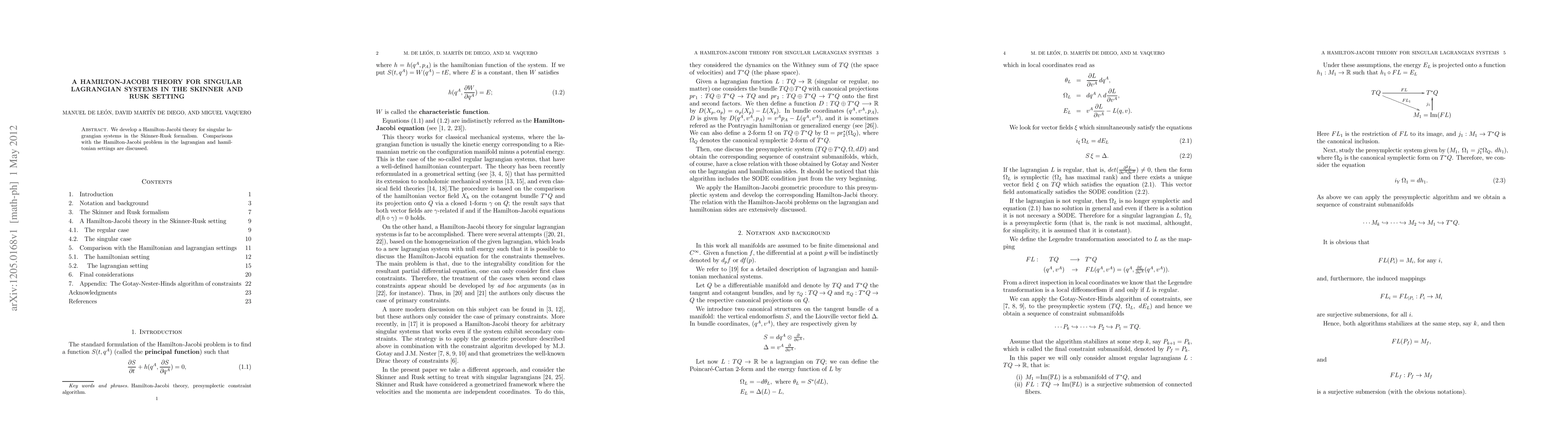 The research develops a Hamilton-Jacobi theory for singular Lagrangian systems in the Skinner-Rusk formalism, comparing it with the Hamilton-Jacobi problem in lagrangian and hamiltonian settings.
