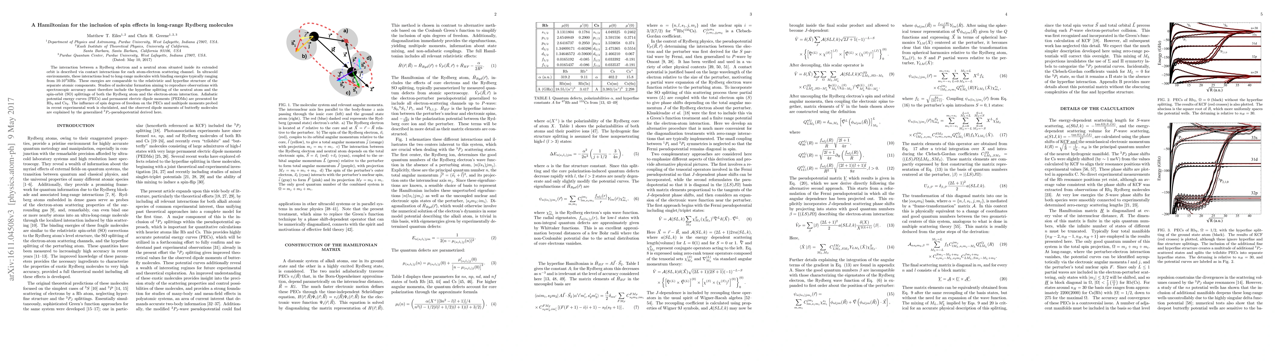 This research presents a Hamiltonian model incorporating spin effects for long-range Rydberg molecules. It provides adiabatic potential energy curves for Rb$_2$ and Cs$_2$, accounting for hyperfine splitting of neutral atoms and spin-orbit splittings of Rydberg atoms and electron-atom interactions, crucial for accurate molecular formation studies.