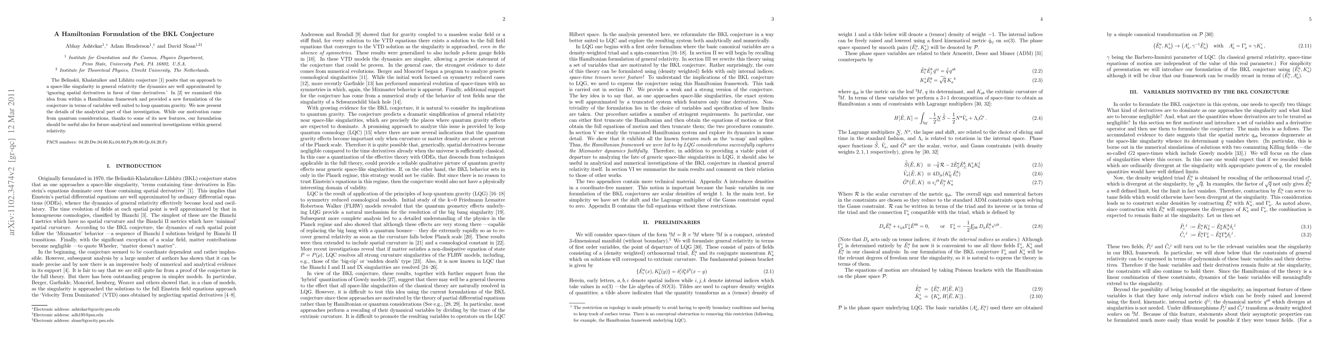 The Belinskii, Khalatnikov and Lifshitz conjecture \cite{bkl1} posits that on approach to a space-like singularity in general relativity the dynamics are well approximated by `ignoring spatial derivatives in favor of time derivatives.' In \cite{ahs1} we examined this idea from within a Hamiltonian framework and provided a new formulation of the conjecture in terms of variables well suited to loop quantum gravity. We now present the details of the analytical part of that investigation. While our motivation came from quantum considerations, thanks to some of its new features, our formulation should be useful also for future analytical and numerical investigations within general relativity.