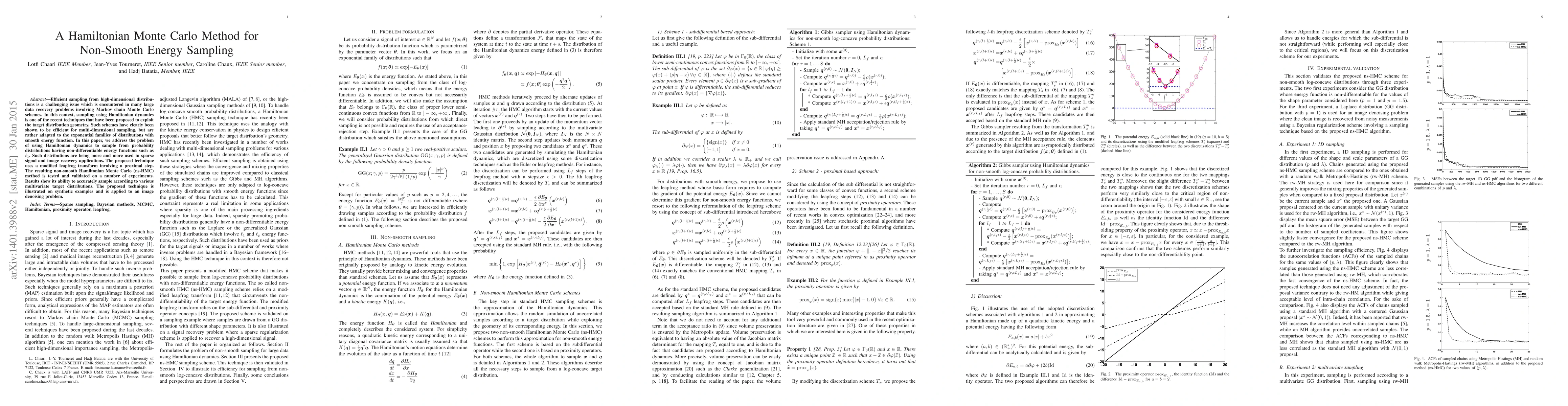 This paper proposes a non-smooth Hamiltonian Monte Carlo (ns-HMC) method to efficiently sample from high-dimensional distributions with non-differentiable energy functions, such as $\ell_1$, commonly used in sparse signal and image recovery. The method integrates a modified leapfrog transform with a proximal step and demonstrates its effectiveness through experiments and applications in image denoising.