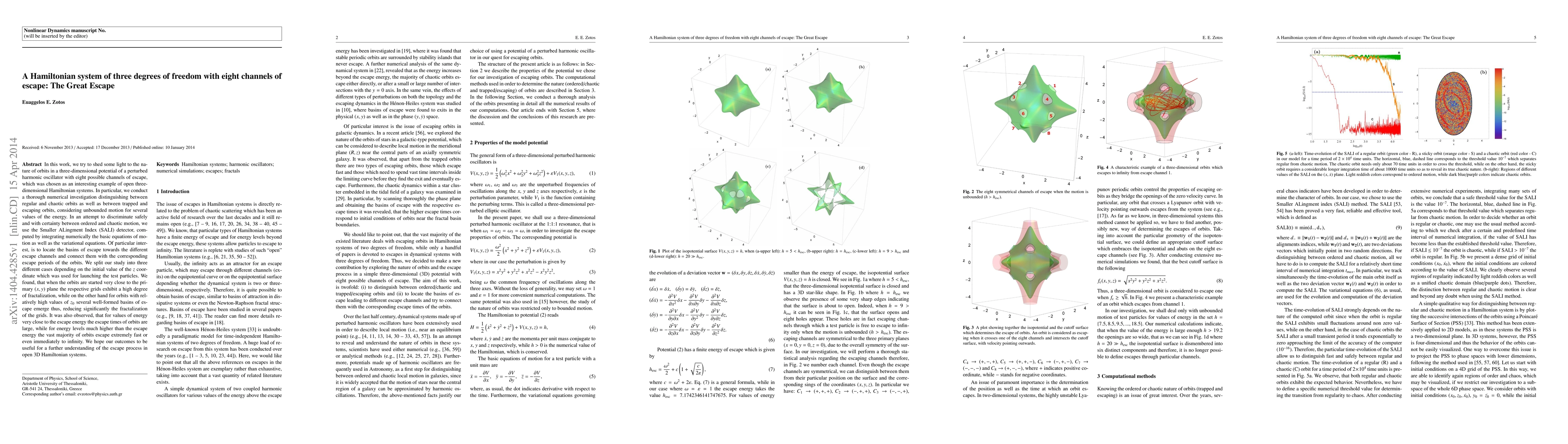 This paper investigates the nature of orbits in a three-dimensional perturbed harmonic oscillator with eight escape channels, employing numerical methods to distinguish between regular and chaotic orbits. The study uses the Smaller ALingment Index (SALI) to differentiate ordered and chaotic motion, revealing fractalized grids for low $z$ orbits and well-formed escape basins for higher $z$ orbits, with significant implications for understanding escape dynamics in open 3D Hamiltonian systems.