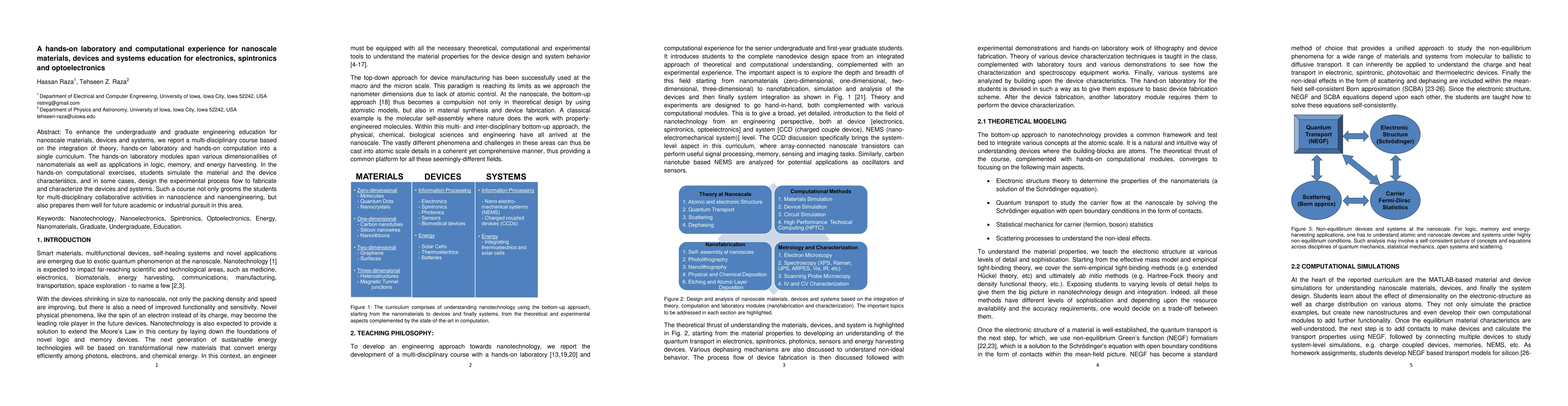 To enhance the undergraduate and graduate engineering education for nanoscale materials, devices and systems, we report a multi-disciplinary course based on the integration of theory, hands-on laboratory and hands-on computation into a single curriculum. The hands-on laboratory modules span various dimensionalities of nanomaterials as well as applications in logic, memory, and energy harvesting. In the hands-on computational exercises, students simulate the material and the device characteristics, and in some cases, design the experimental process flow to fabricate and characterize the devices and systems. Such a course not only grooms the students for multi-disciplinary collaborative activities in nanoscience and nanoengineering, but also prepares them well for future academic or industrial pursuit in this area.