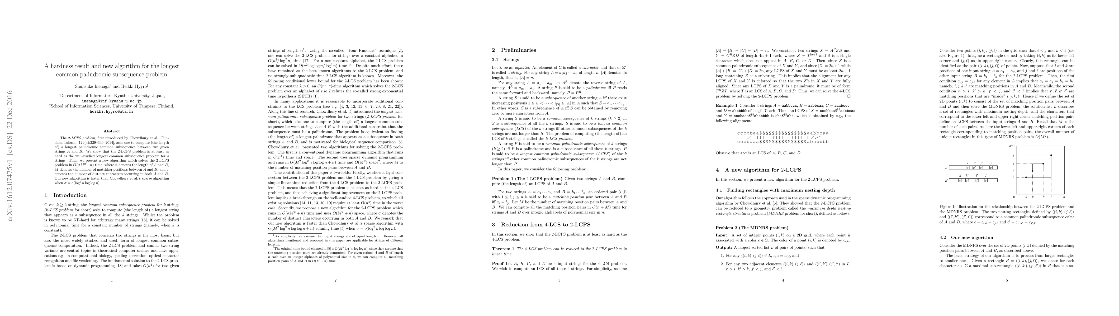 This paper establishes the 2-LCPS problem's computational hardness relative to the 4-LCS problem and introduces a new algorithm that solves the 2-LCPS problem in $O(\sigma M^2 + n)$ time, outperforming previous methods when $\sigma$ is small.