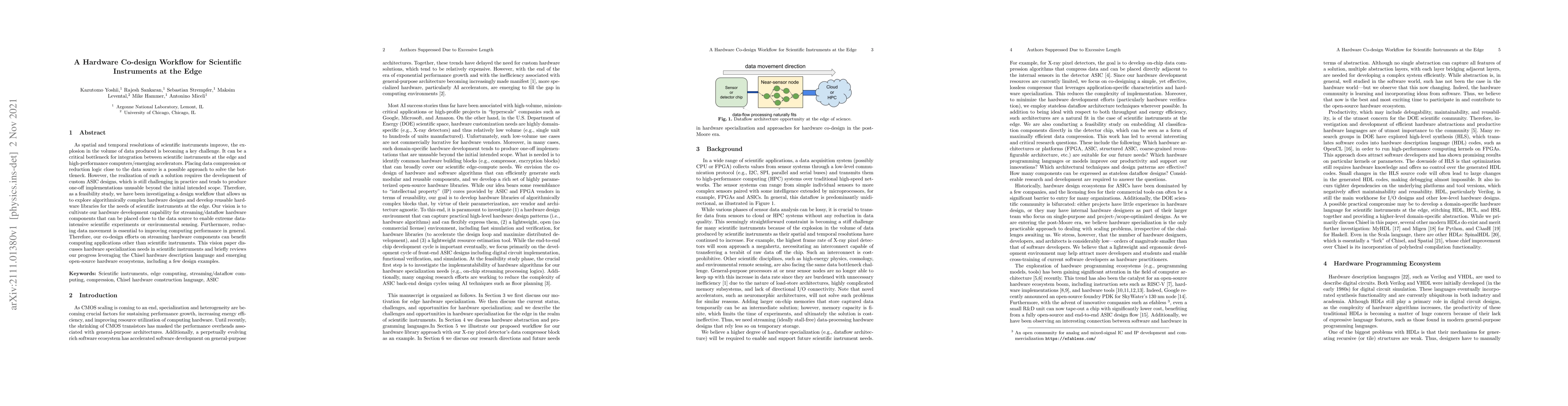 This paper explores a hardware co-design workflow to address the data bottleneck in scientific instruments at the edge, proposing reusable hardware libraries for data compression near the source. It leverages the Chisel language and open-source ecosystems to develop streaming hardware components, aiming to enhance data-intensive experiments and improve overall computing performance.