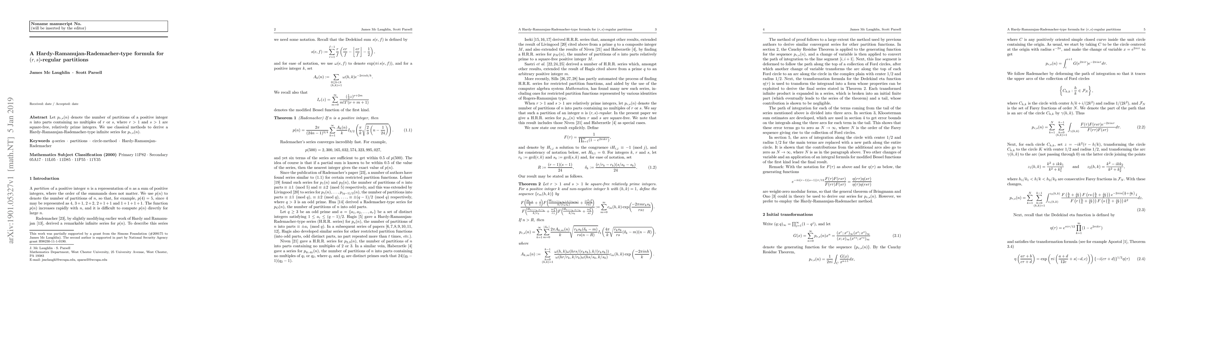 Researchers derived a formula for counting (r,s)-regular partitions of positive integers n into parts with no multiples of square-free numbers r and s. The formula uses classical methods to create an infinite series for the number of such partitions.