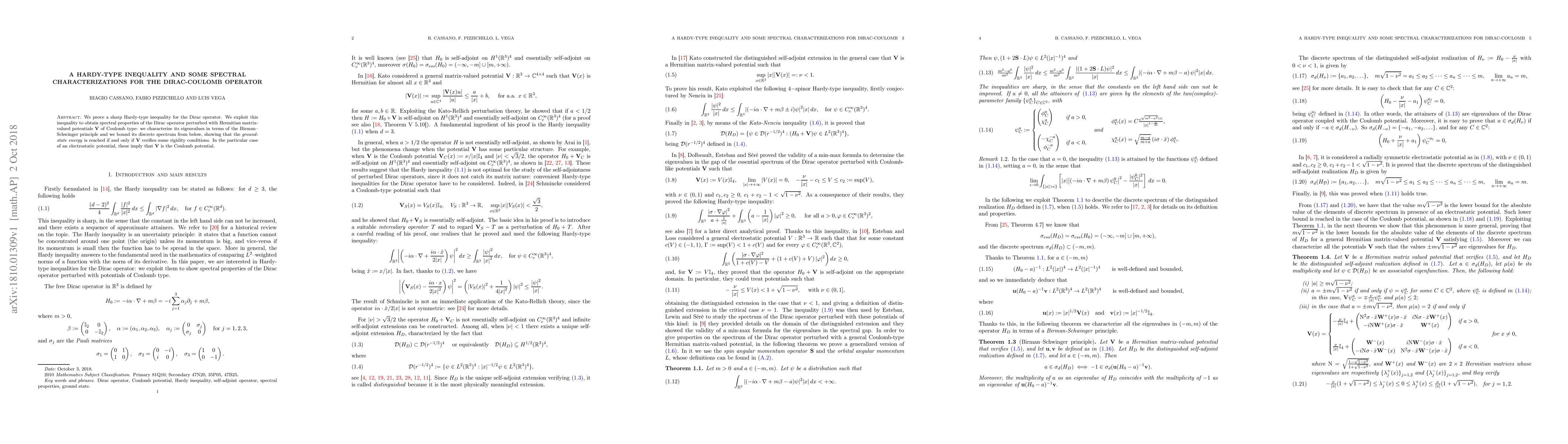 We prove a sharp Hardy-type inequality for the Dirac operator. We exploit this inequality to obtain spectral properties of the Dirac operator perturbed with Hermitian matrix-valued potentials $\mathbf V$ of Coulomb type: we characterise its eigenvalues in terms of the Birman-Schwinger principle and we bound its discrete spectrum from below, showing that the \emph{ground-state energy} is reached if and only if $\mathbf V$ verifies some {rigidity} conditions. In the particular case of an electrostatic potential, these imply that $\mathbf V$ is the Coulomb potential.