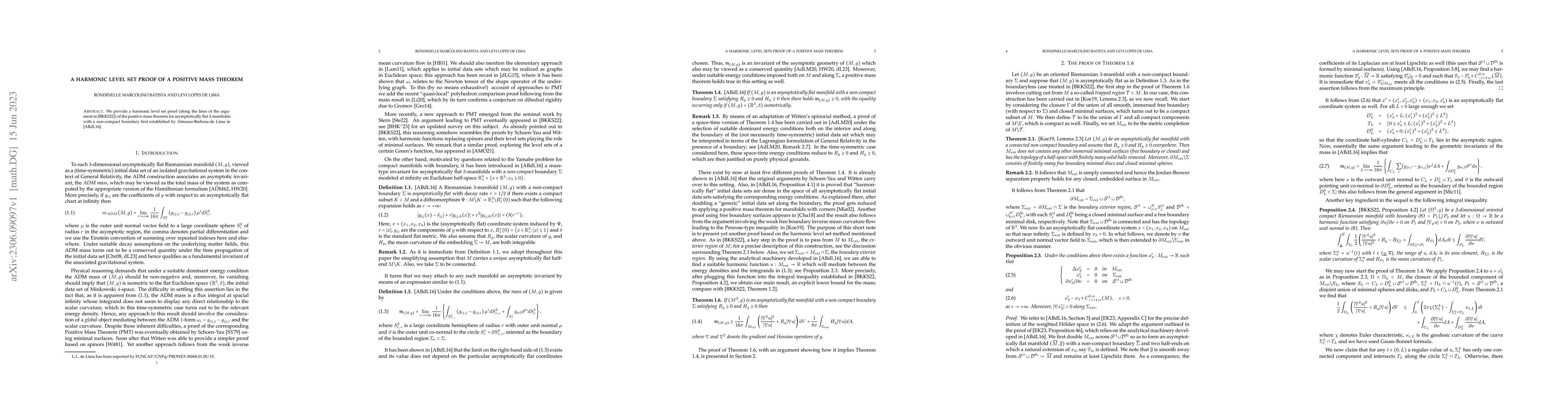 Summary: This paper presents a harmonic level set proof for the positive mass theorem in asymptotically flat 3-manifolds with non-compact boundaries, building on the foundational work of Almaraz-Barbosa-de Lima. The method offers a novel approach to verifying the theorem in these complex geometries.