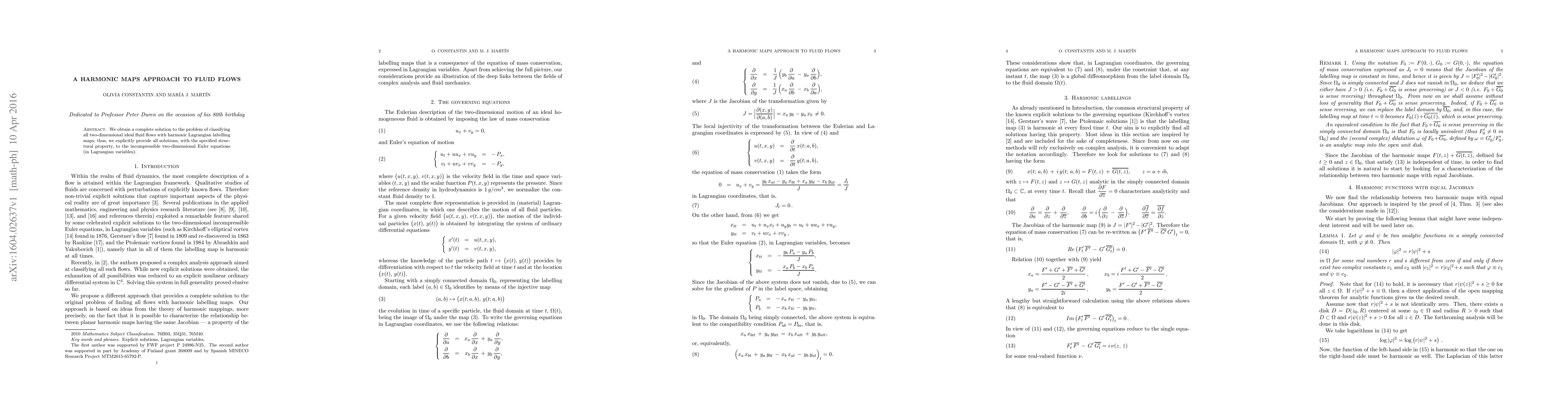 This paper classifies all two-dimensional ideal fluid flows using harmonic maps, providing a complete solution to the incompressible Euler equations in Lagrangian variables and explicitly detailing all such flows with harmonic Lagrangian labelling maps.